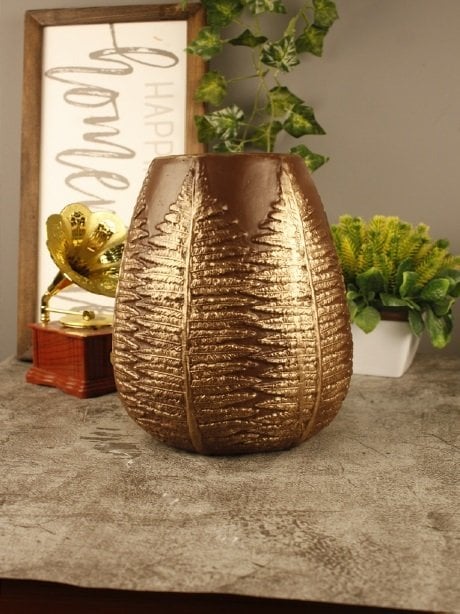 Veramaya Çam Desenli Kahverengi Polyester Vazo 20x16 Cm