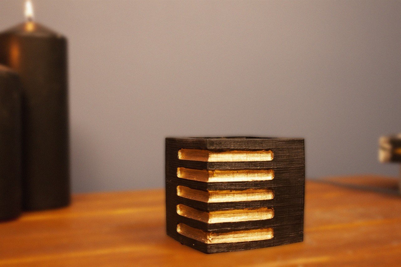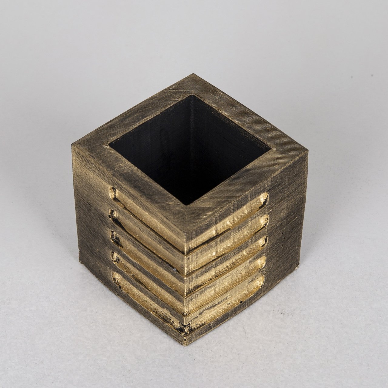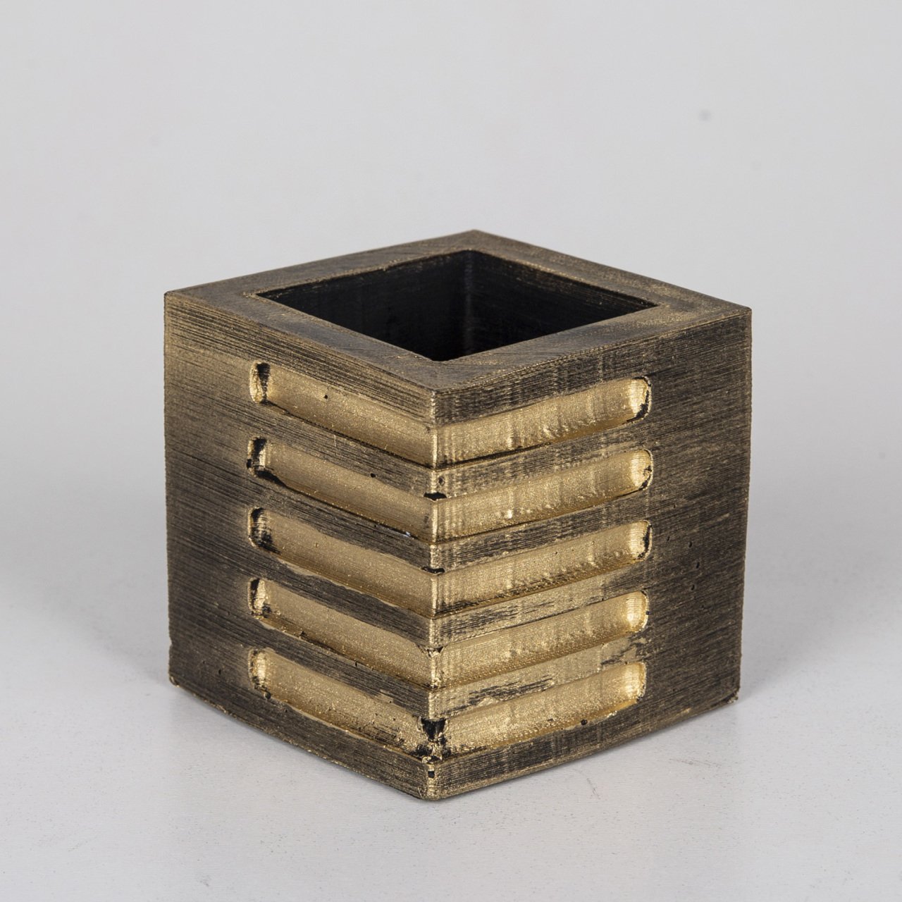 Veramaya Çizgili Küp Kalemlik Sukulent Saksı 8 Cm