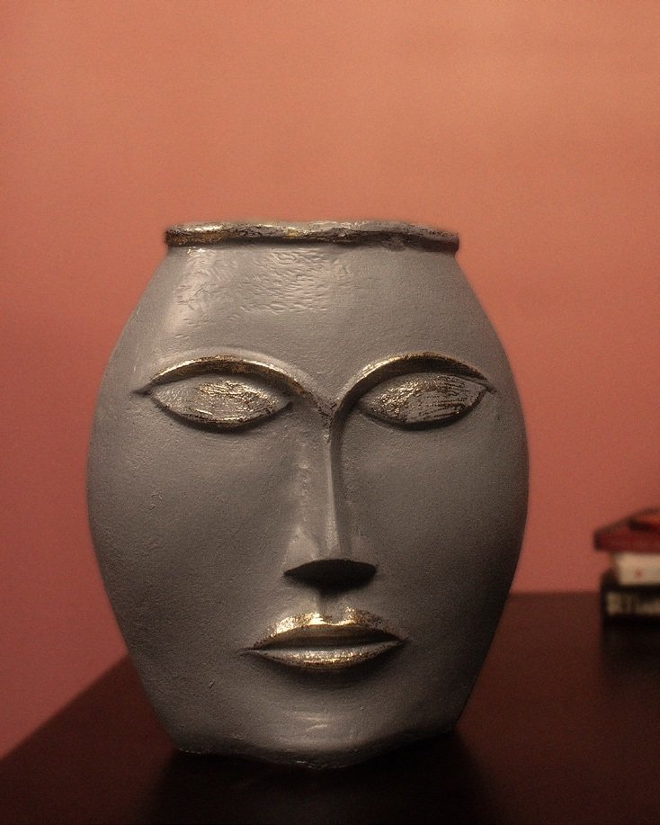 VeraMaya Dekoratif Polyester Gri Surat Vazo 28x25x10 Cm