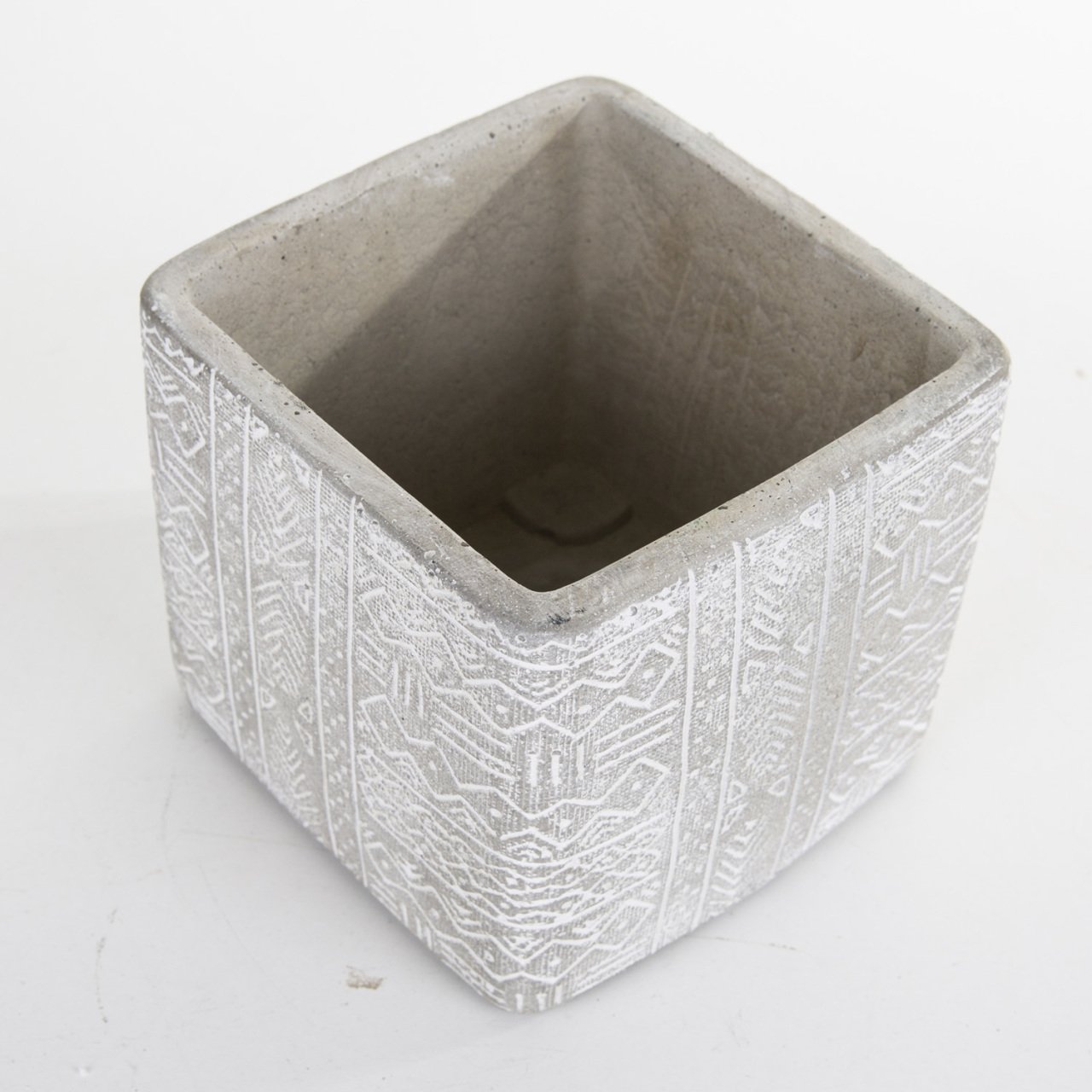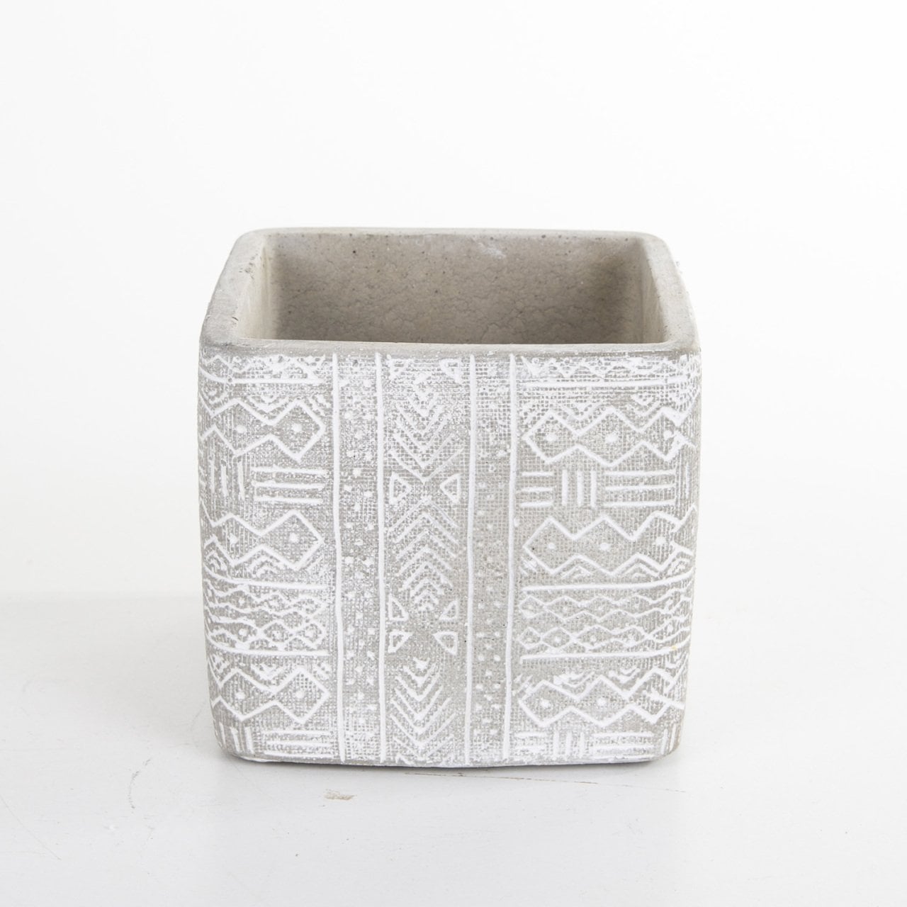 Veramaya Etnik Desenli Beyaz Kare Beton Saksı 13x11,5 Cm