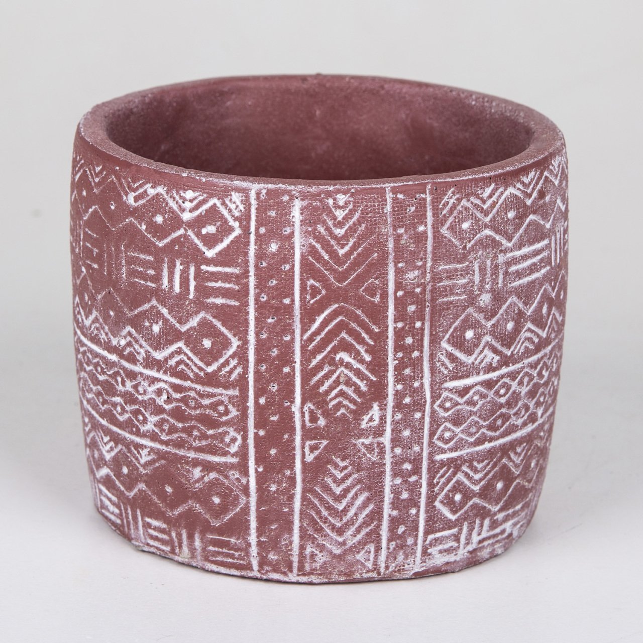 Veramaya Etnik Desenli Bordo Beton Saksı 14x12 Cm