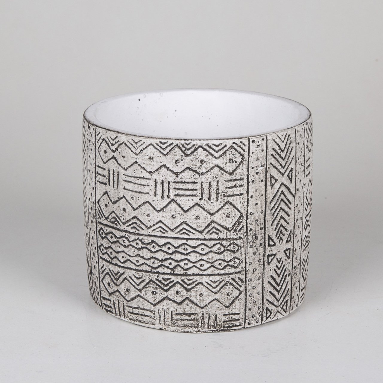 Veramaya Etnik Desenli Büyük Eskitme Beton Saksı 17x14,5 Cm