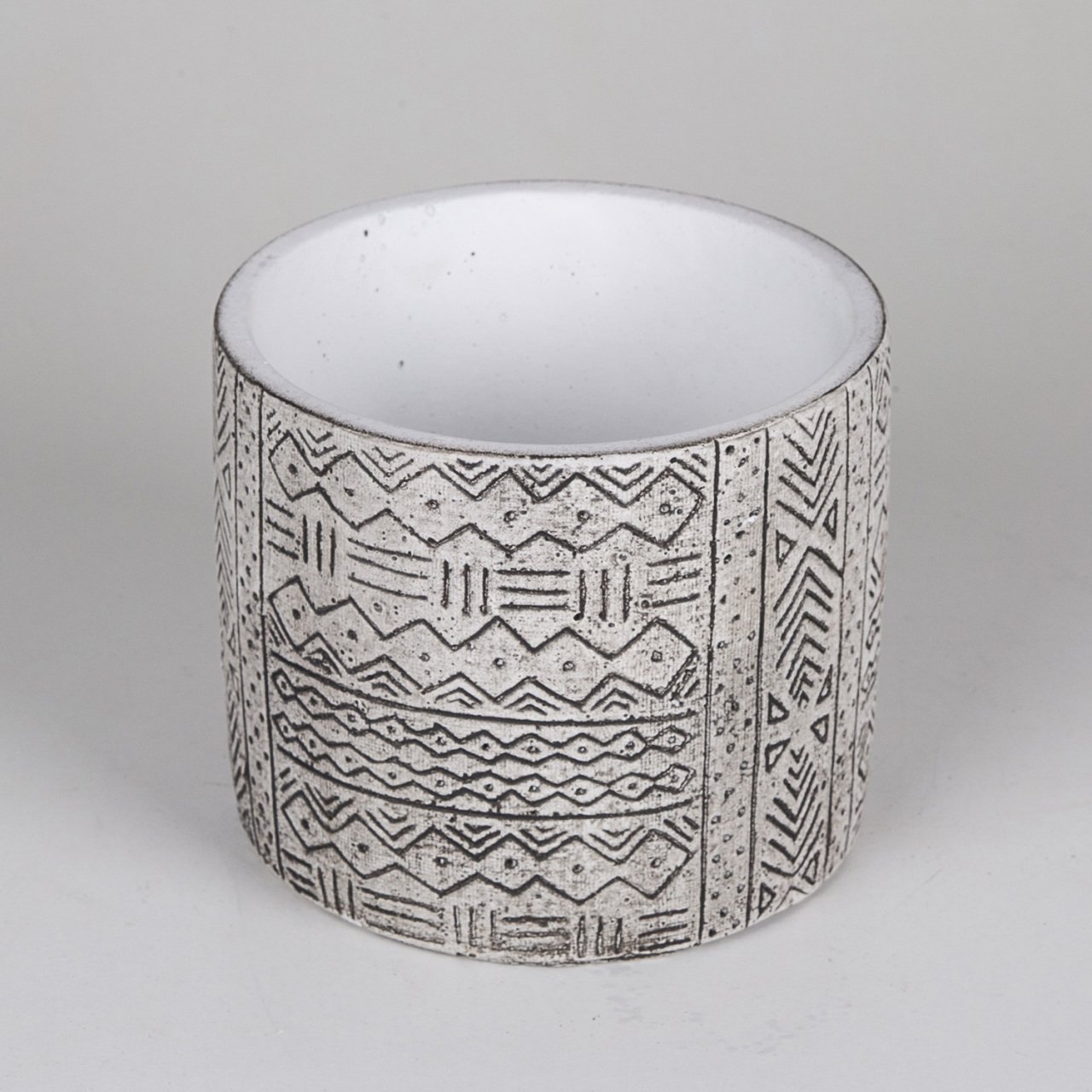 VeraMaya Etnik Desenli Büyük Eskitme Beton Saksı 17x14,5 Cm