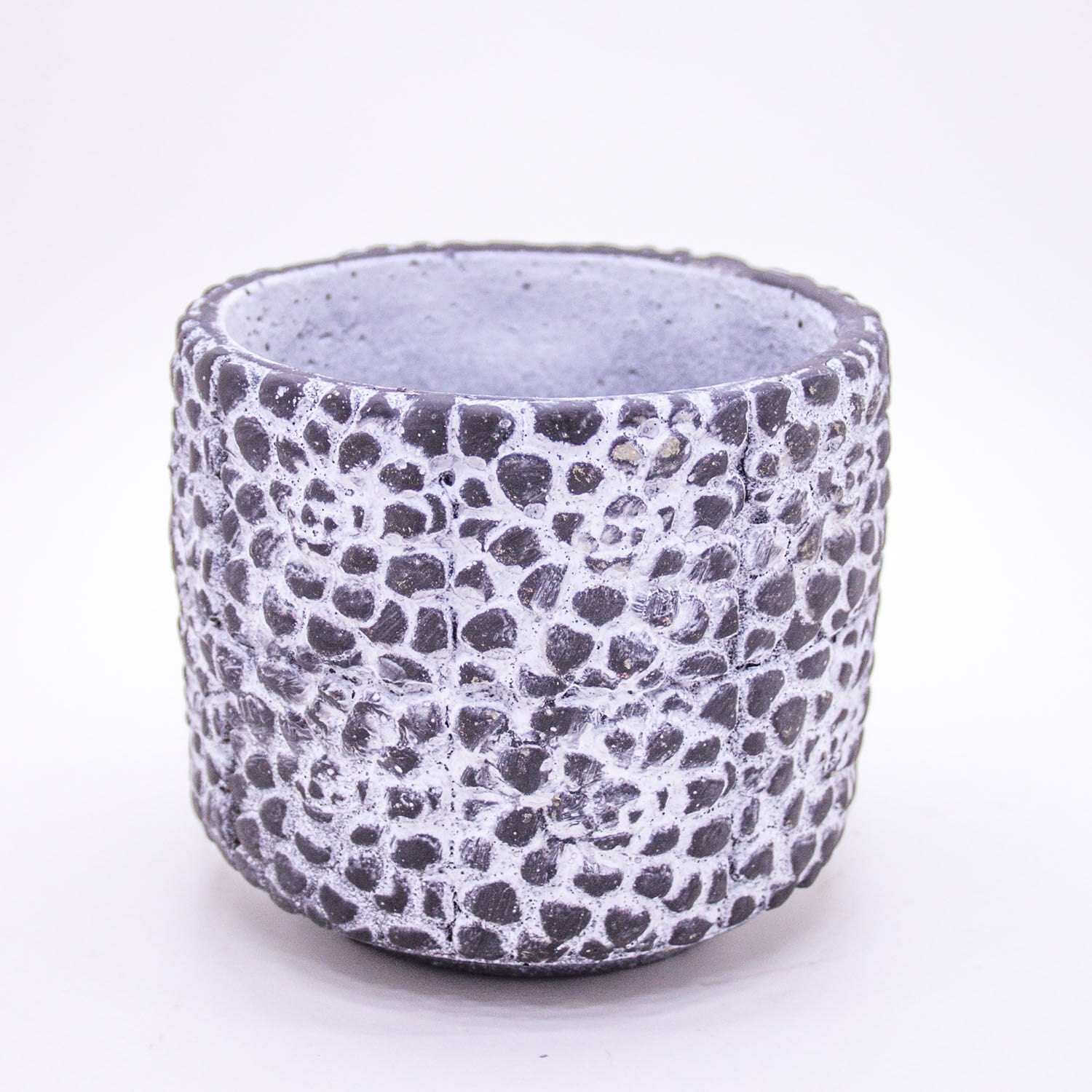 Veramaya Gül Desenli Beyaz Siyah Beton Saksı 12x10 Cm