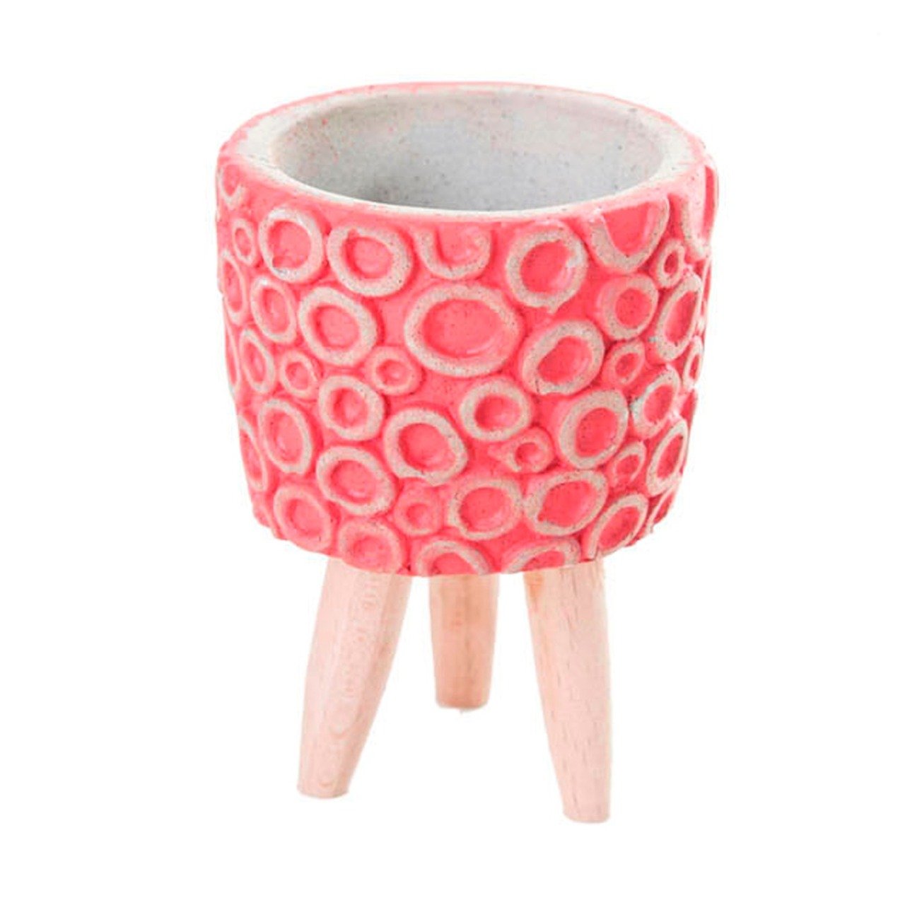 Veramaya Halka Desenli Ayaklı Kırmızı Beton Sukulent Saksı 8x11,5 Cm