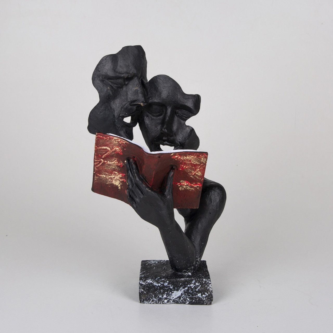 Veramaya Kitap Okuyan Çift Biblo Siyah 36x20 Cm