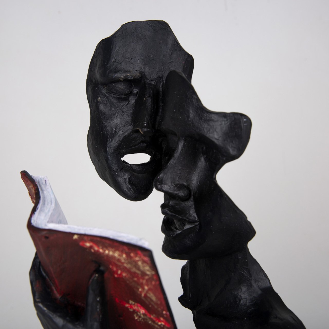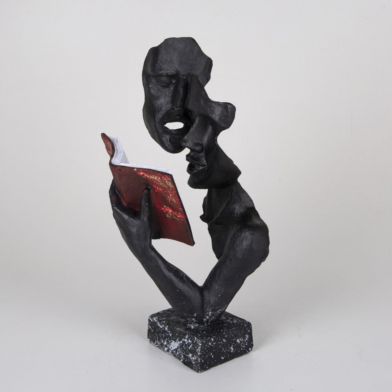 VeraMaya Kitap Okuyan Çift Biblo Siyah 36x20 Cm