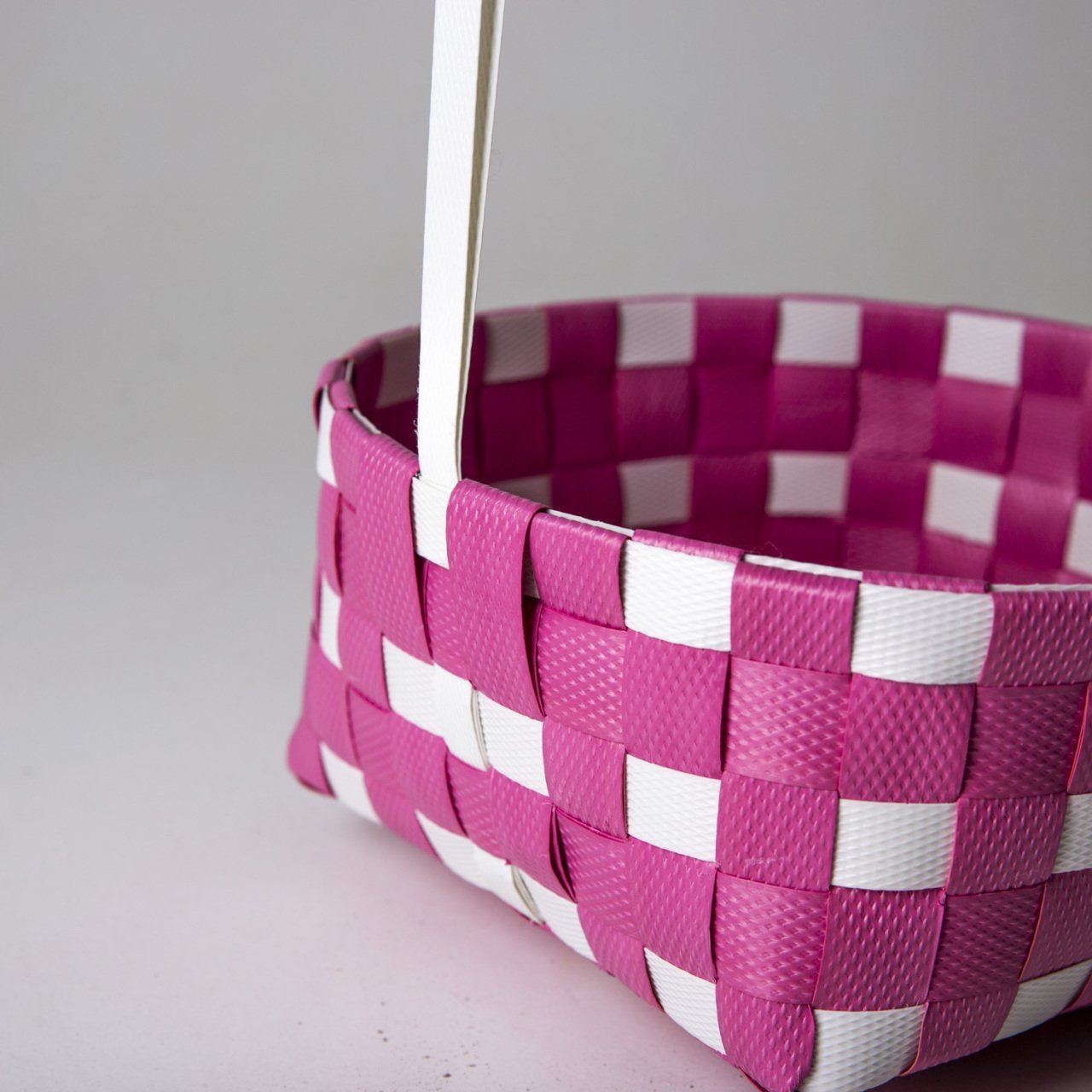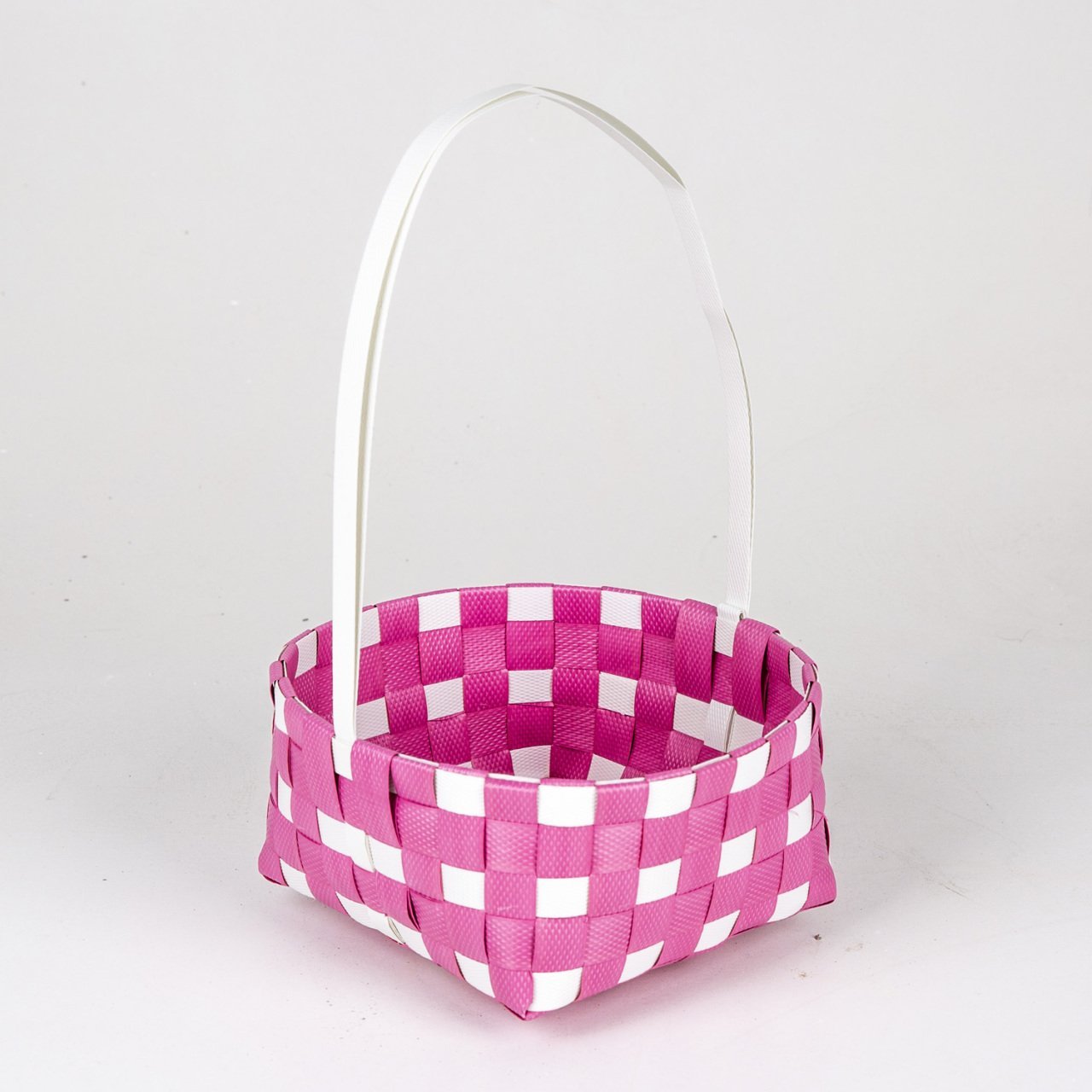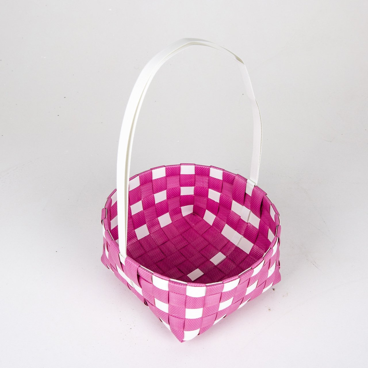 VeraMaya Kulplu Rattan Hasır Sepet Pembe Beyaz 20x10 Cm