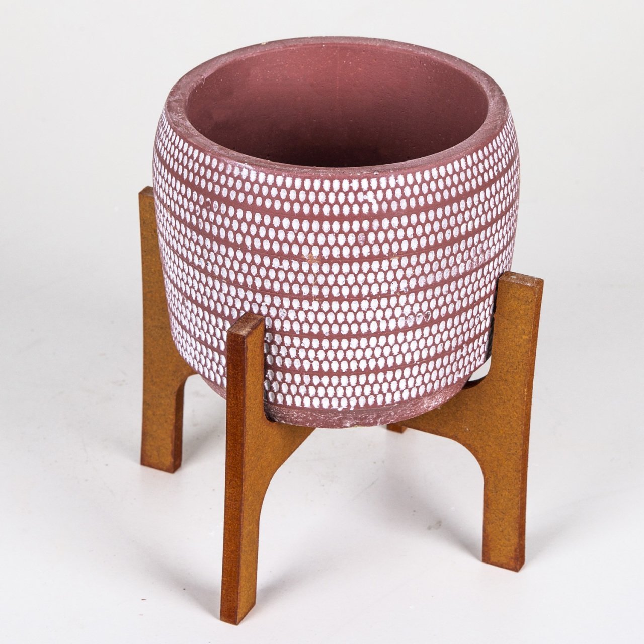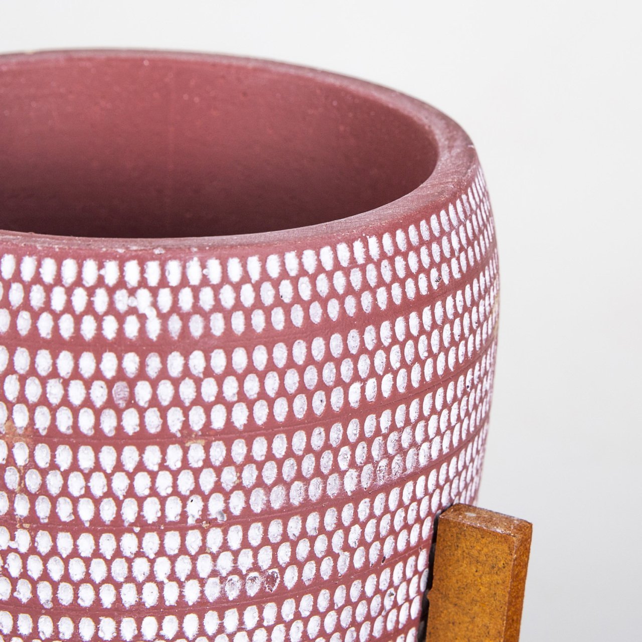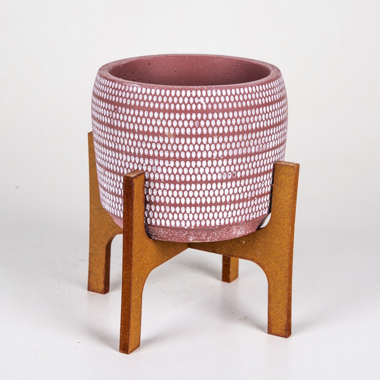 Veramaya Stand Ayaklı Damla Şerit Desen Bordo Beton Saksı 15x20 Cm