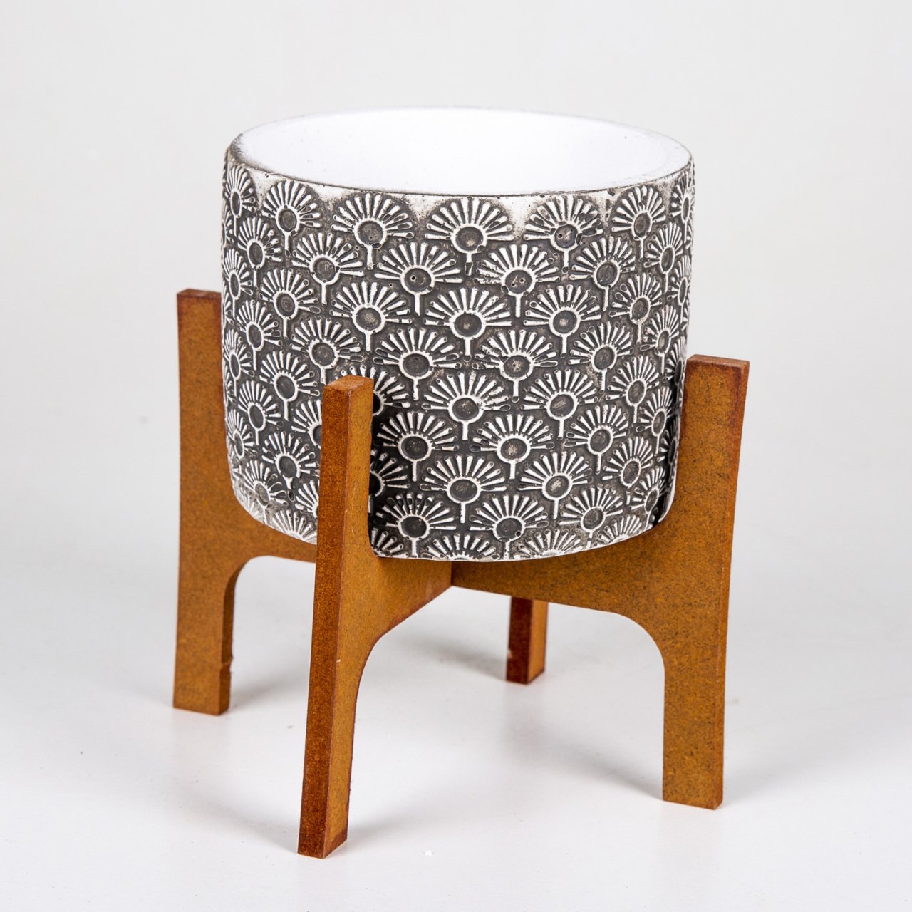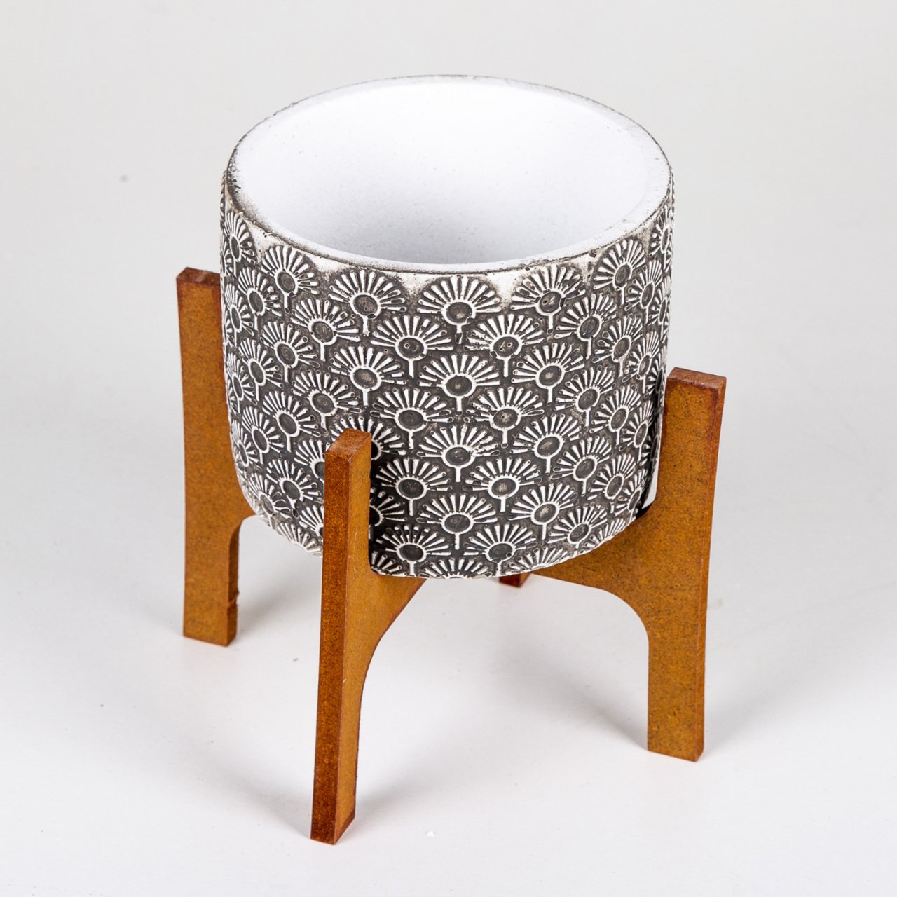 Veramaya Stand Ayaklı Işık Desen Eskitme Beton Saksı 14x19 Cm