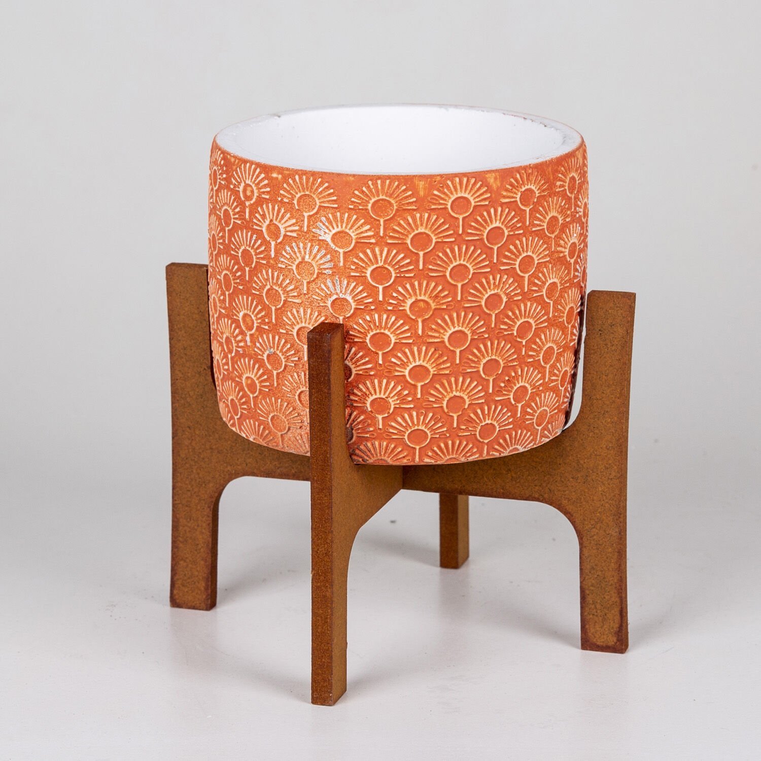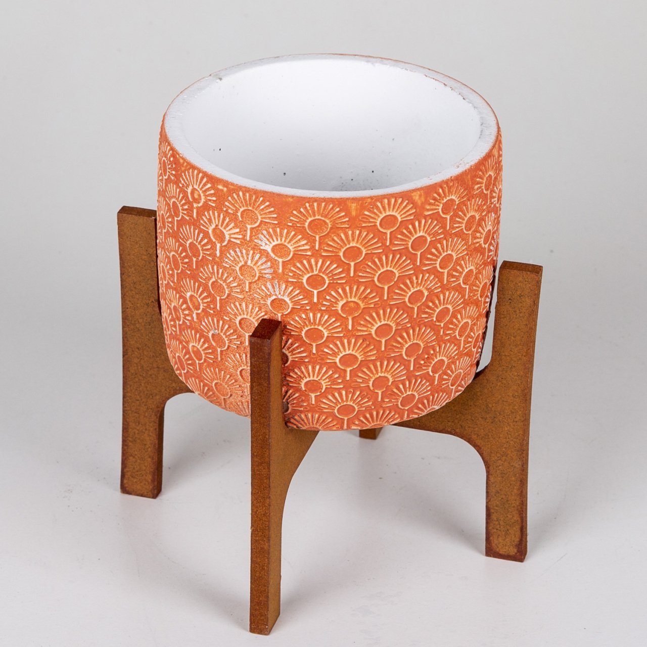 Veramaya Stand Ayaklı Işık Desen Kiremit Renk Beton Saksı 14x 19 Cm