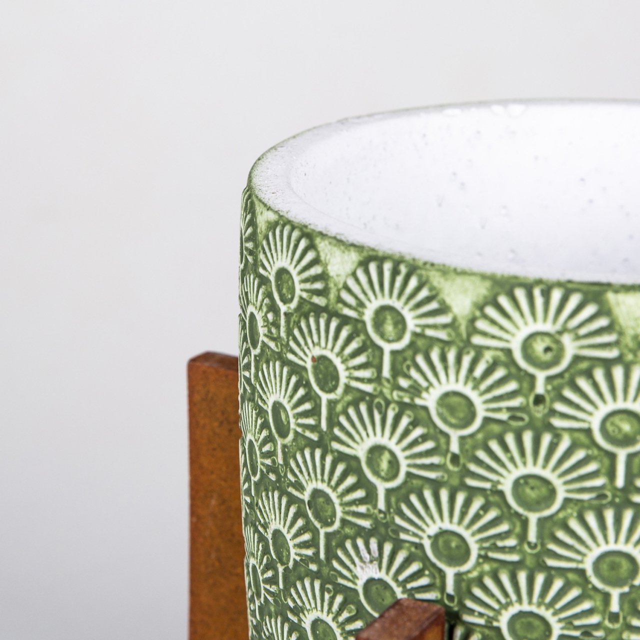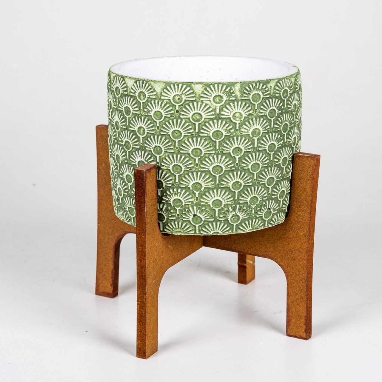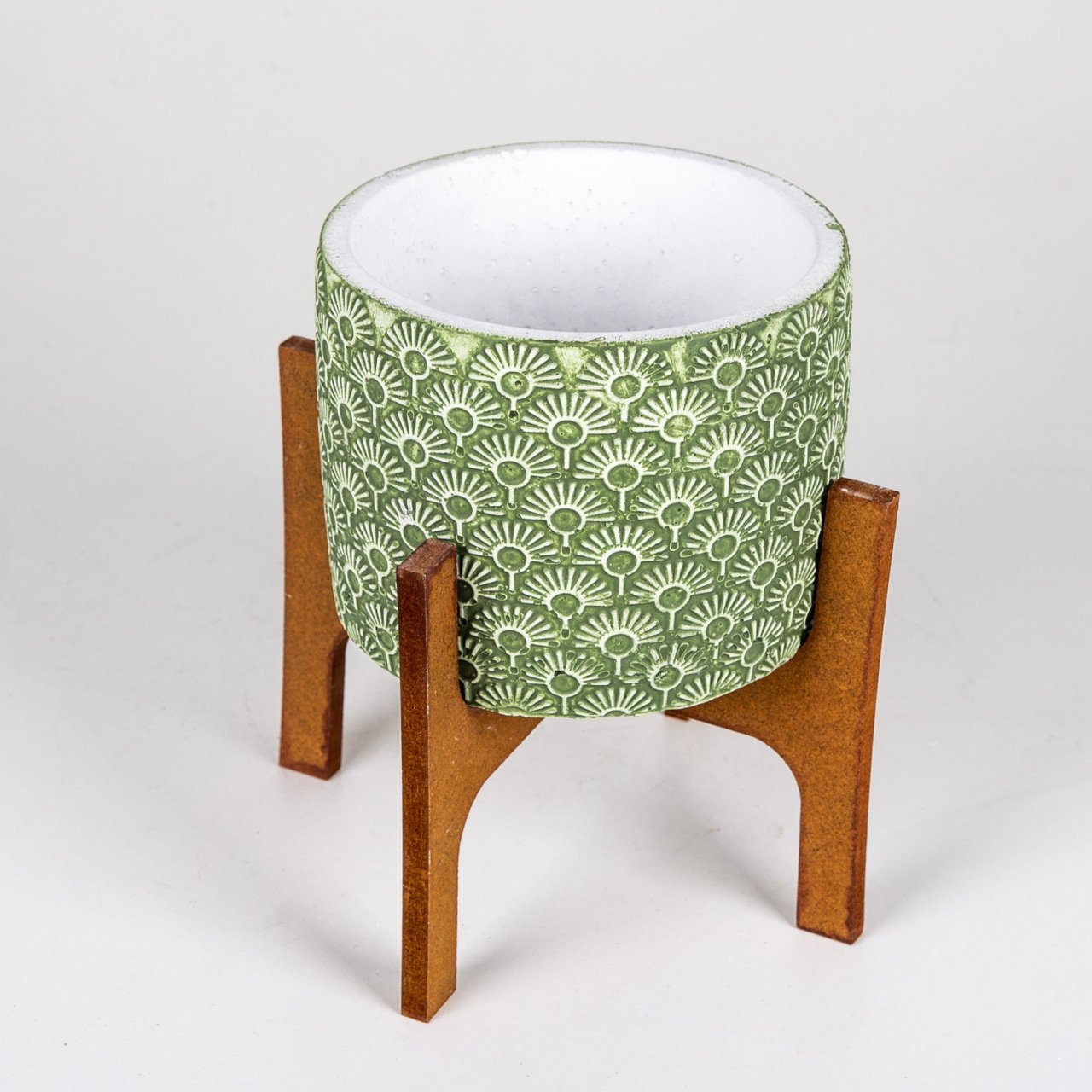 VeraMaya Stand Ayaklı Işık Desen Yeşil Beton Saksı 14x19 Cm