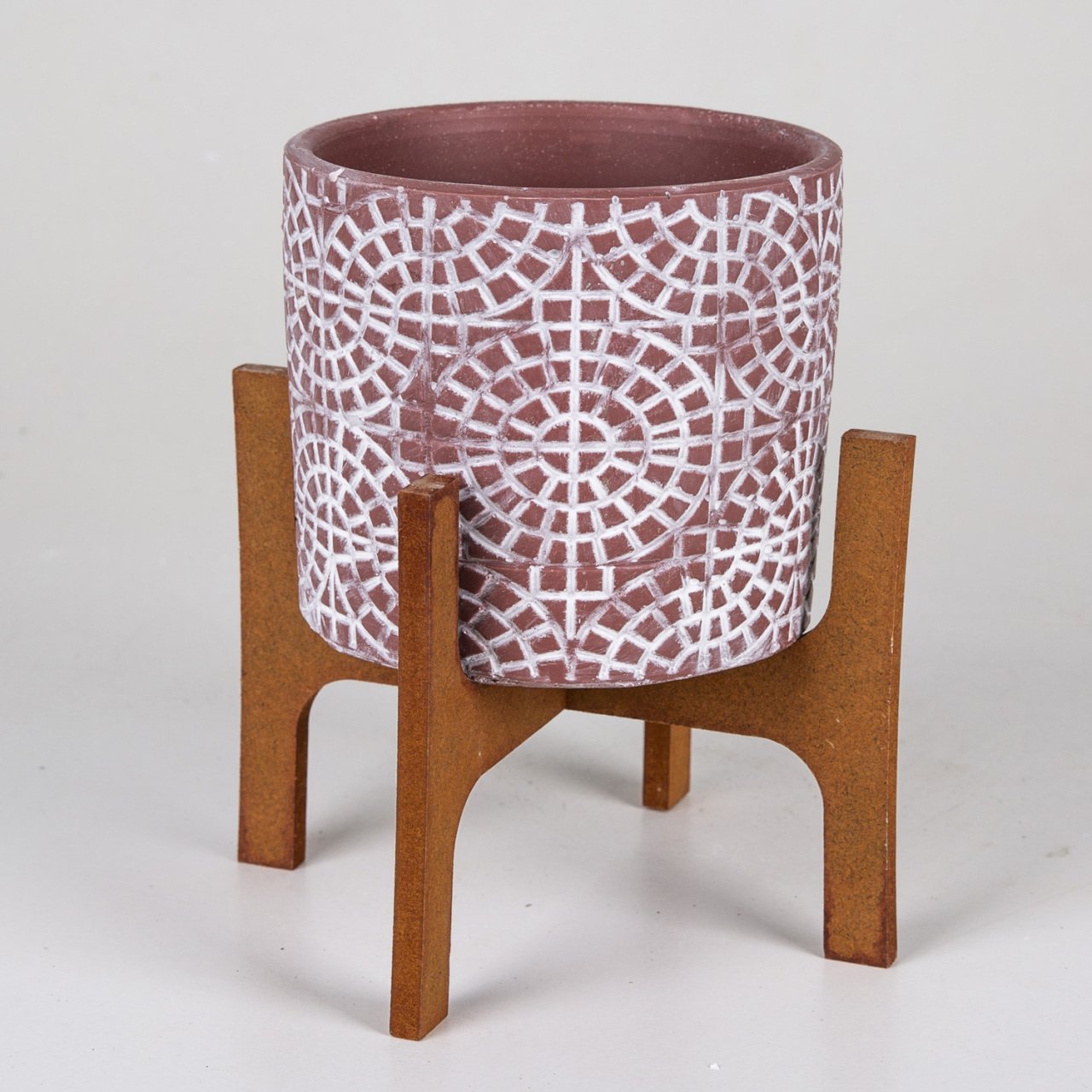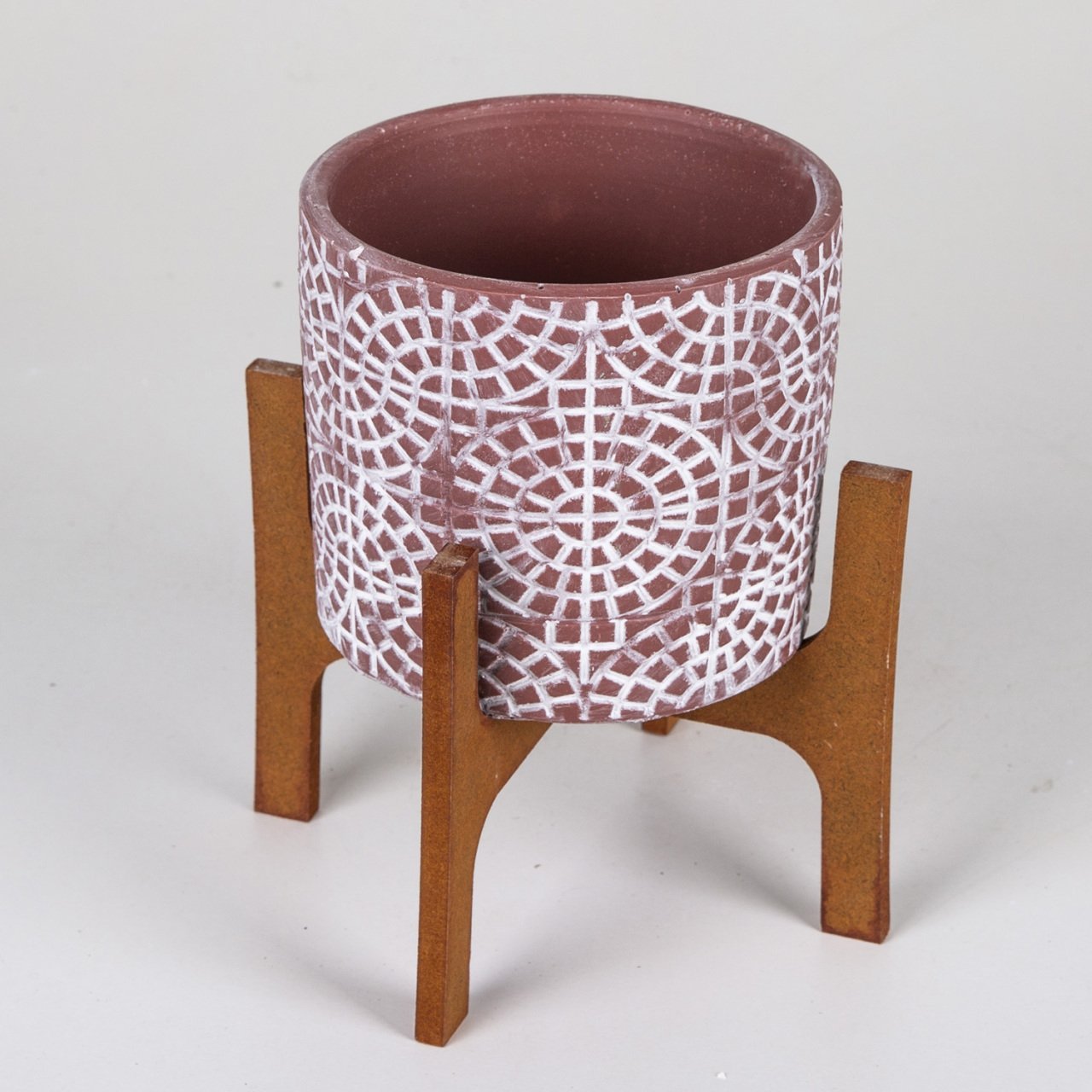 Veramaya Stand Ayaklı Mozaik Desen Bordo Beton Saksı 14x20 Cm