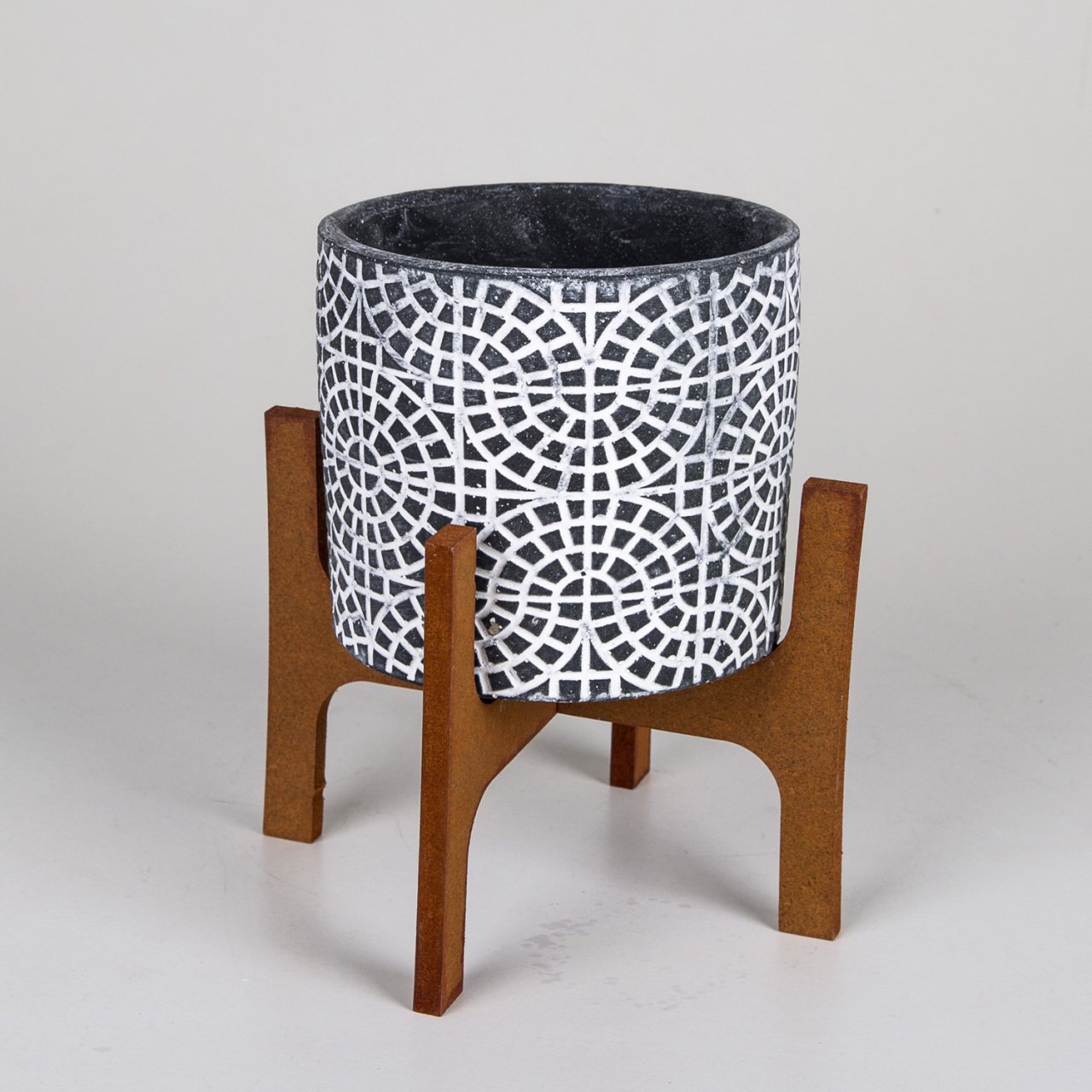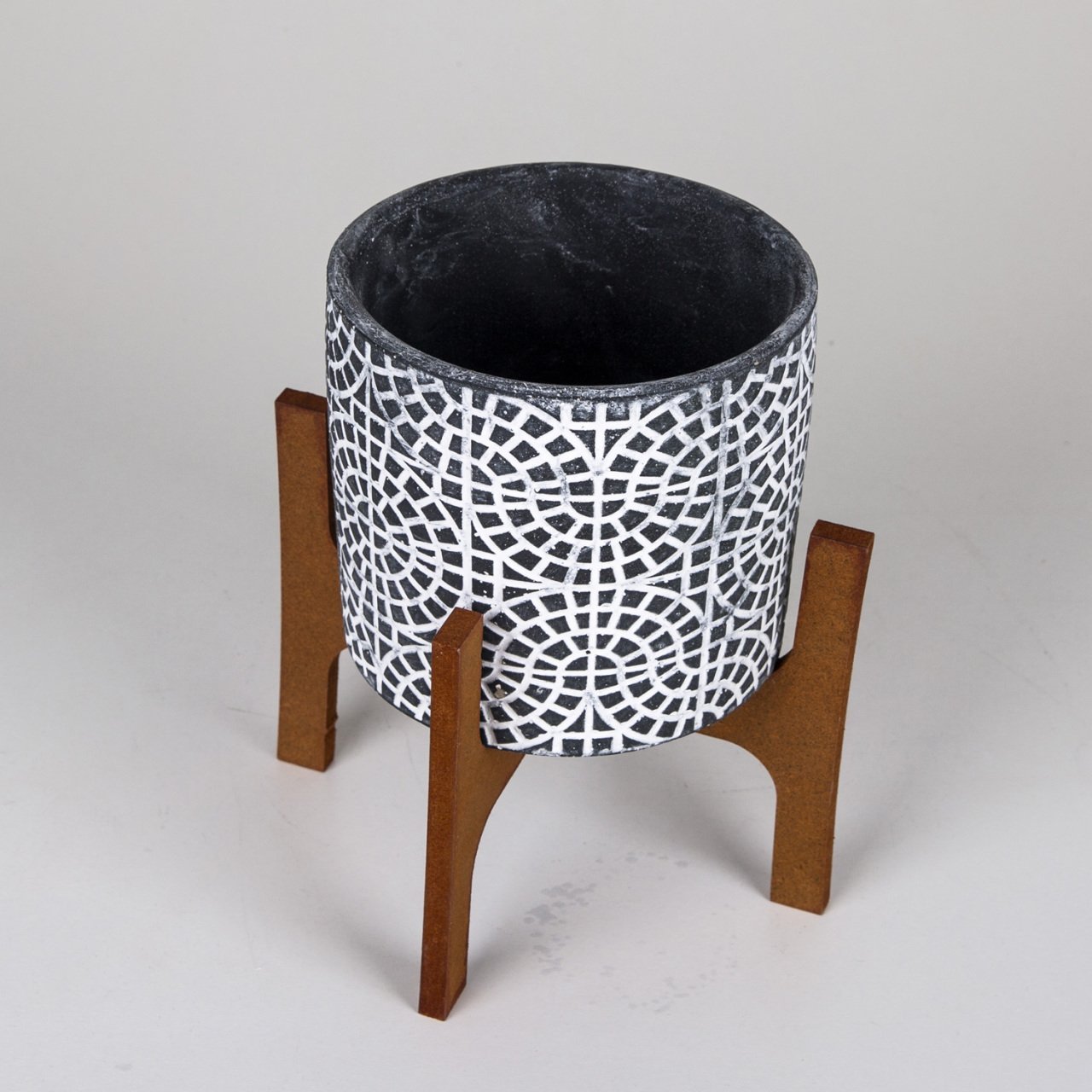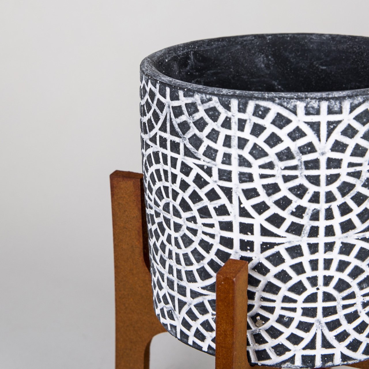 Veramaya Stand Ayaklı Mozaik Desen Siyah Beton Saksı 14x20 Cm