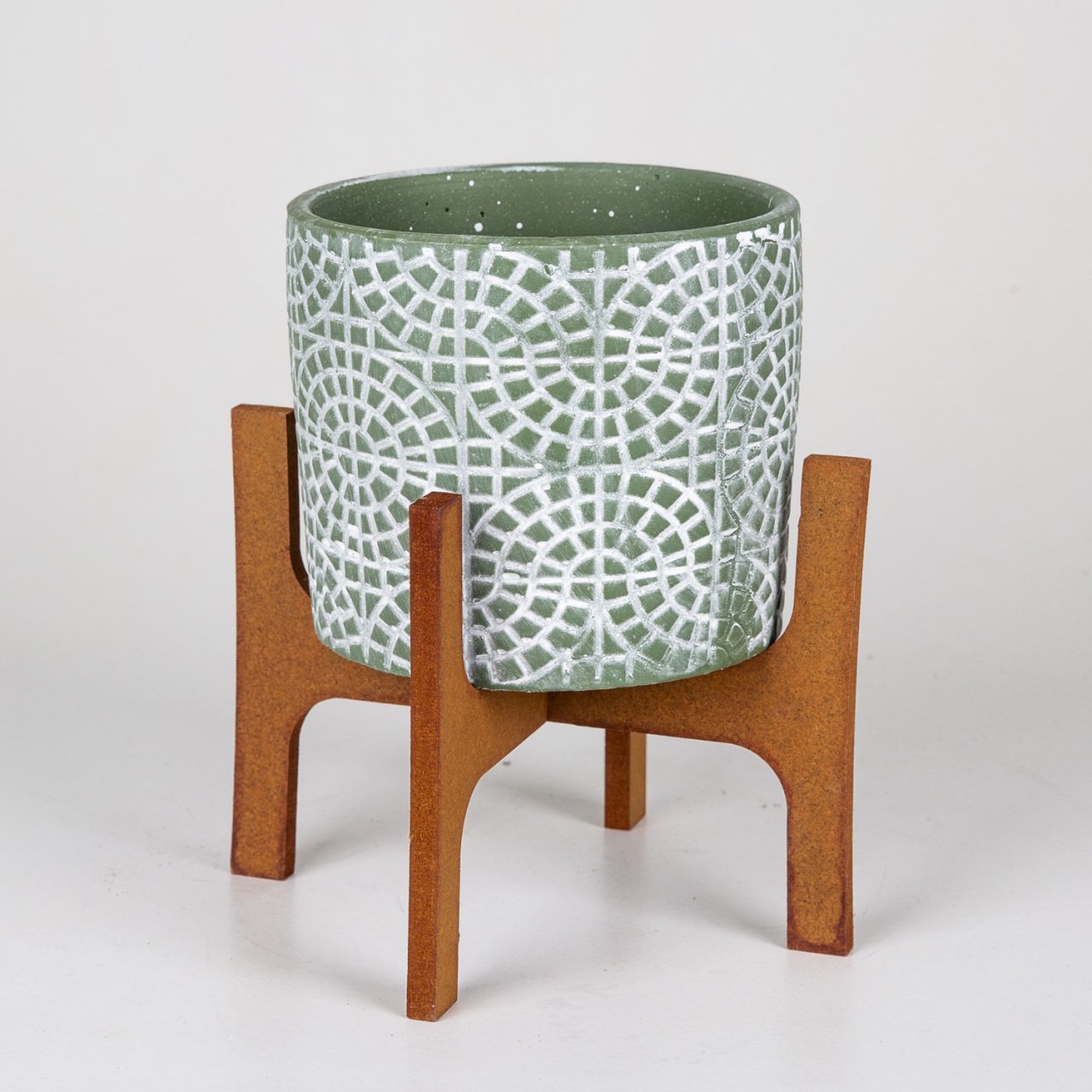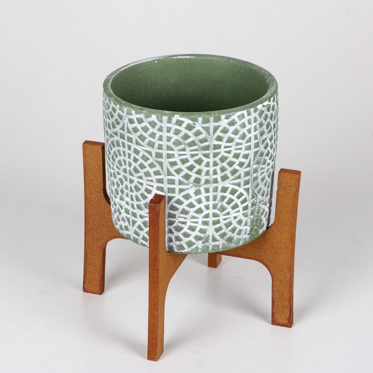 Veramaya Stand Ayaklı Mozaik Desen Yeşil Beton Saksı 14x20 Cm