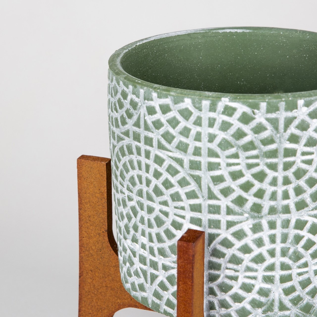 VeraMaya Stand Ayaklı Mozaik Desen Yeşil Beton Saksı 14x20 Cm