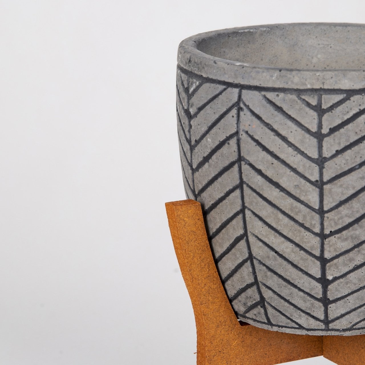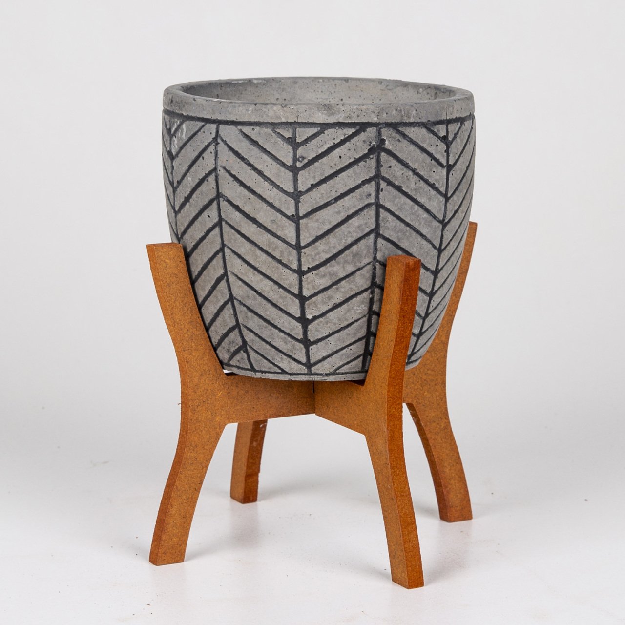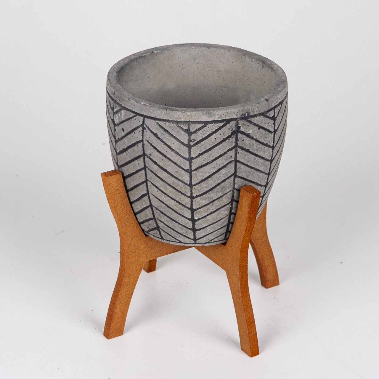 VeraMaya Stand Ayaklı Yaprak Çizgili Gri Beton Saksı 13,5x21 Cm