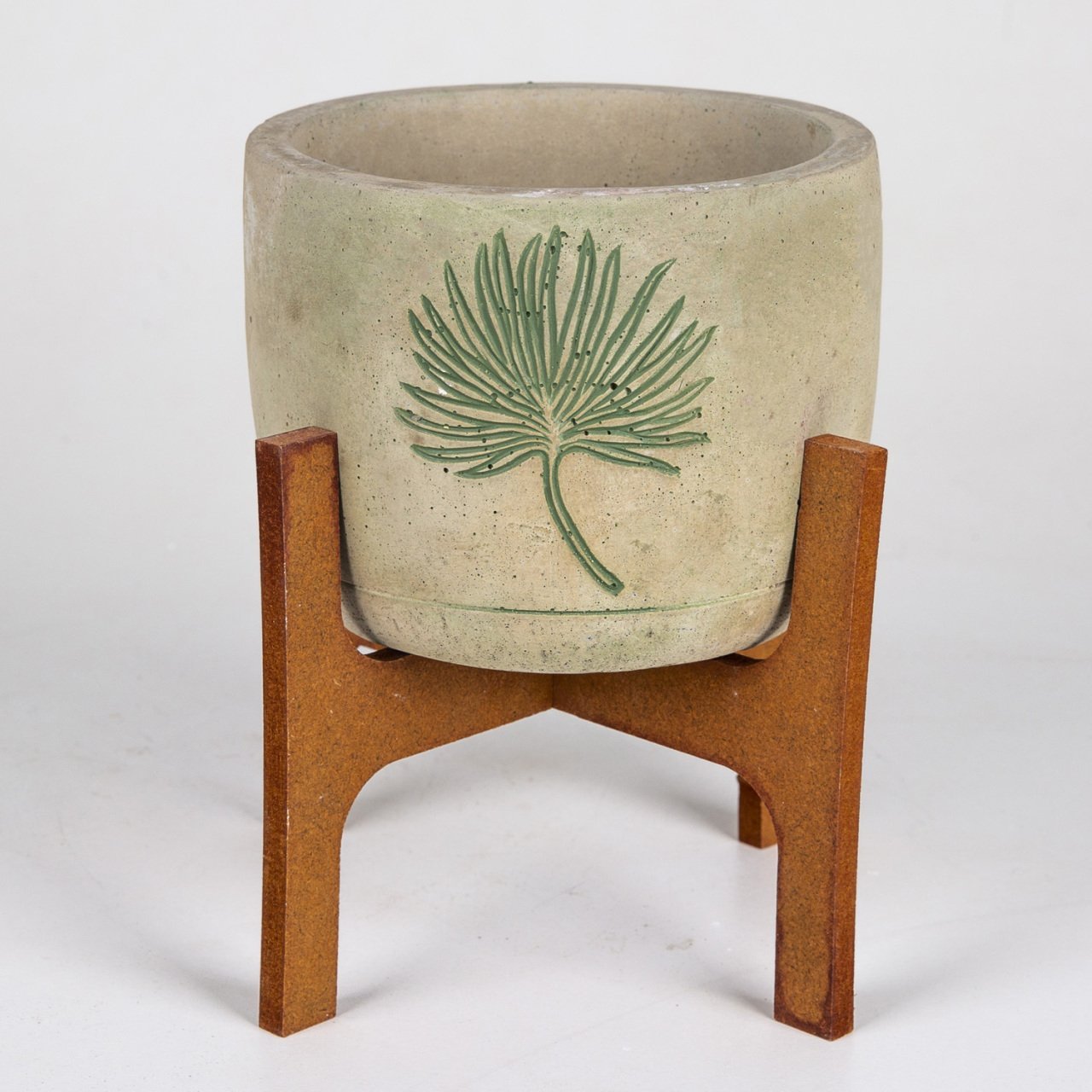 Veramaya Stand Ayaklı Yaprak Figürlü Gri Beton Saksı 14x20 Cm