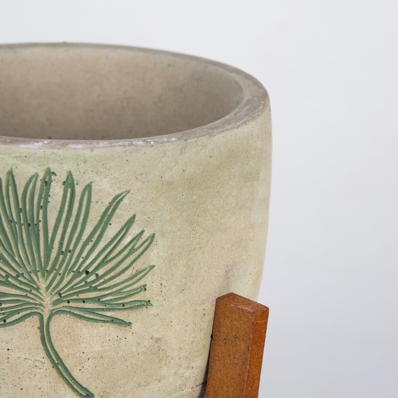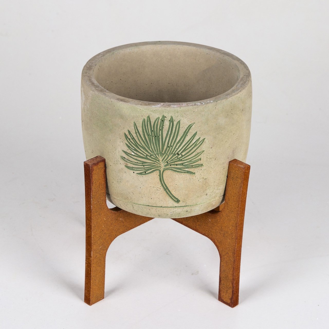 VeraMaya Stand Ayaklı Yaprak Figürlü Gri Beton Saksı 14x20 Cm