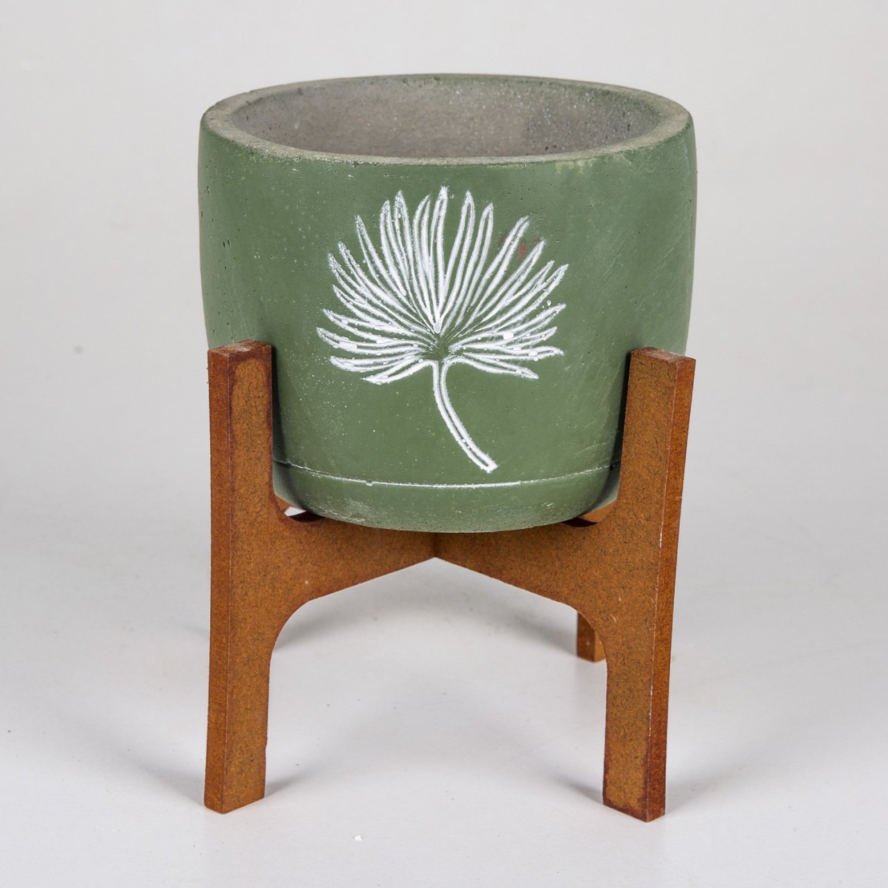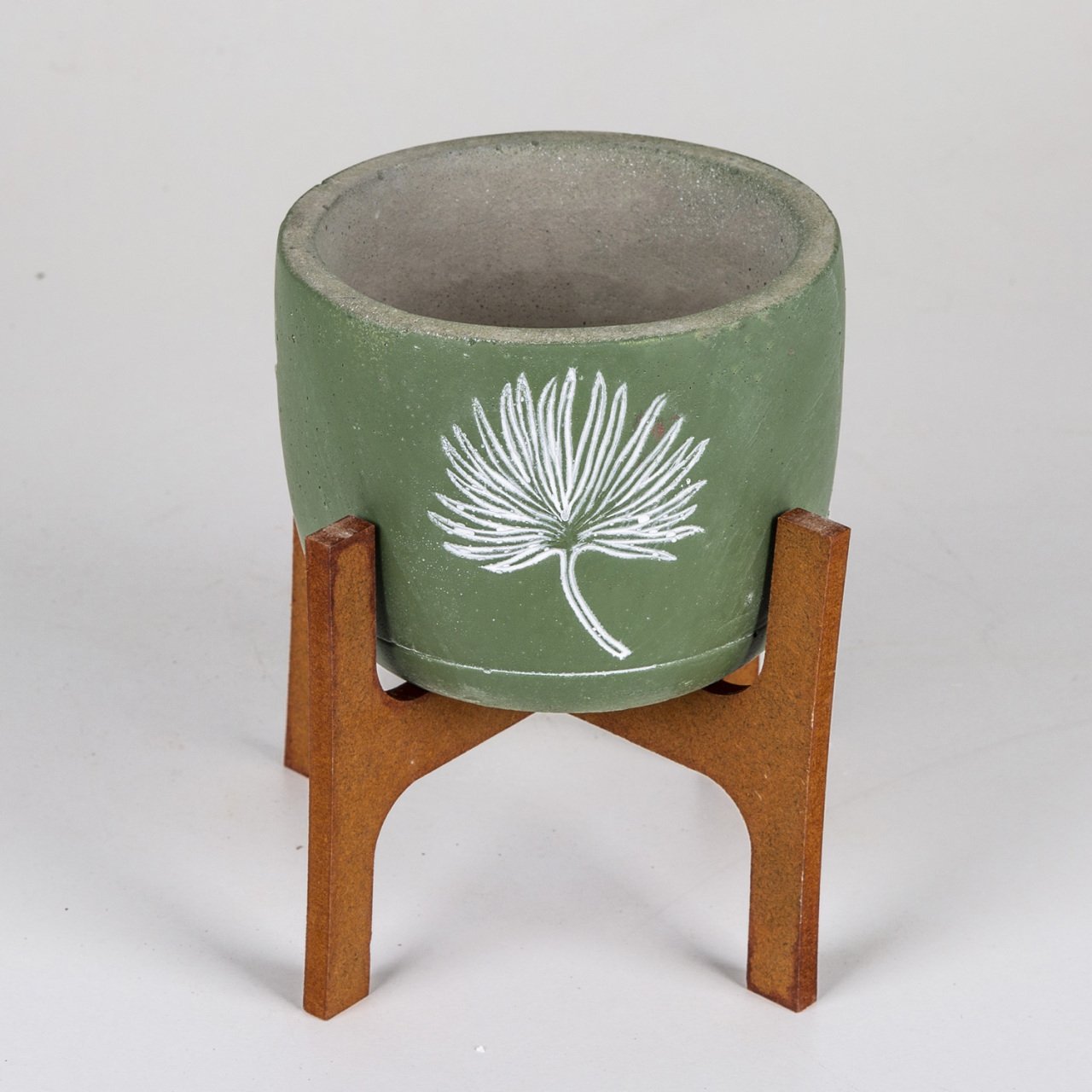 VeraMaya Stand Ayaklı Yaprak Figürlü Yeşil Beton Saksı 14x20 Cm