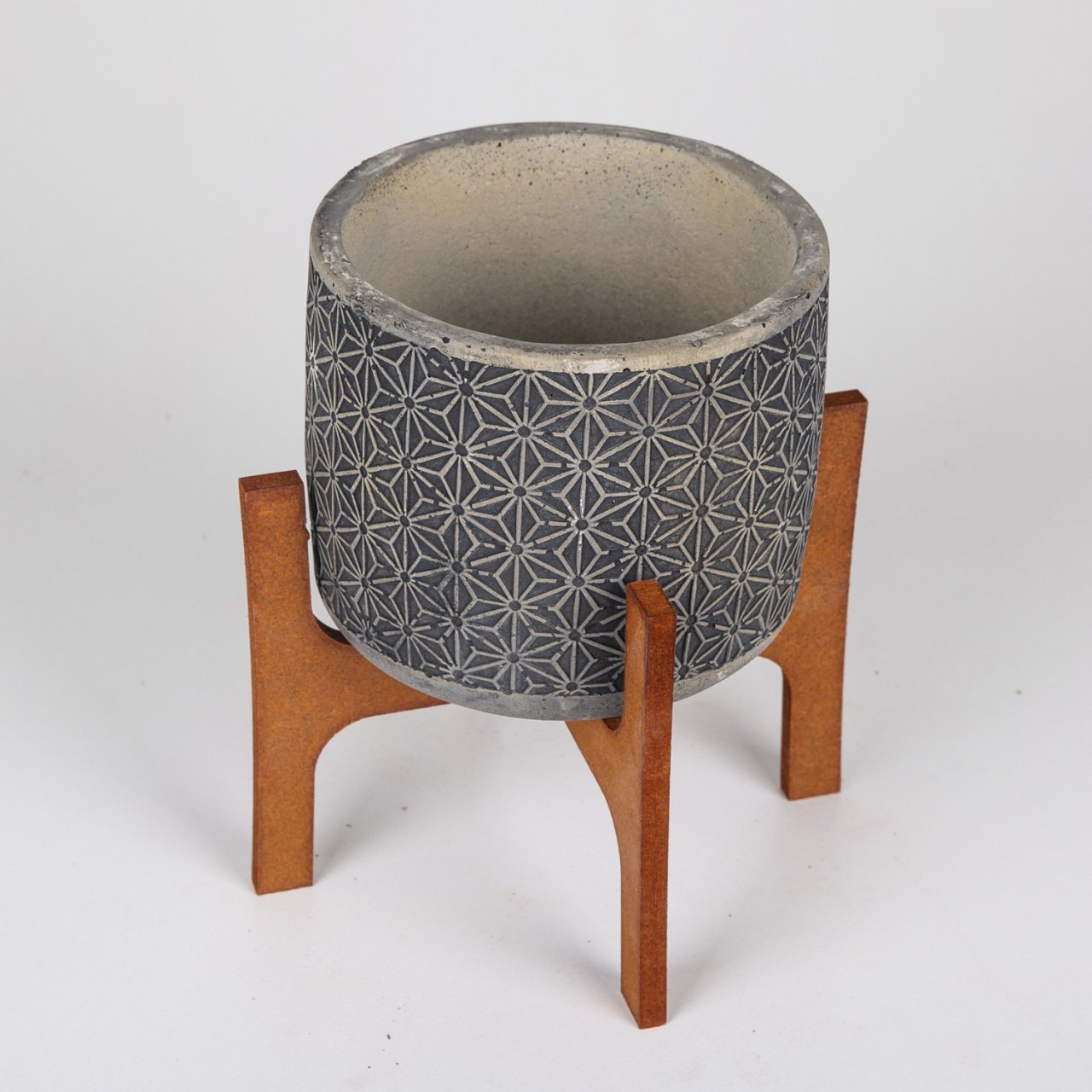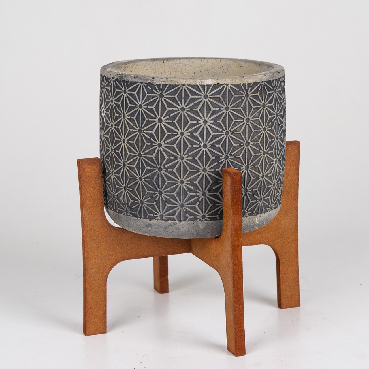 Veramaya Stand Ayaklı Yıldız Desen Siyah Beton Saksı14x20,5 Cm