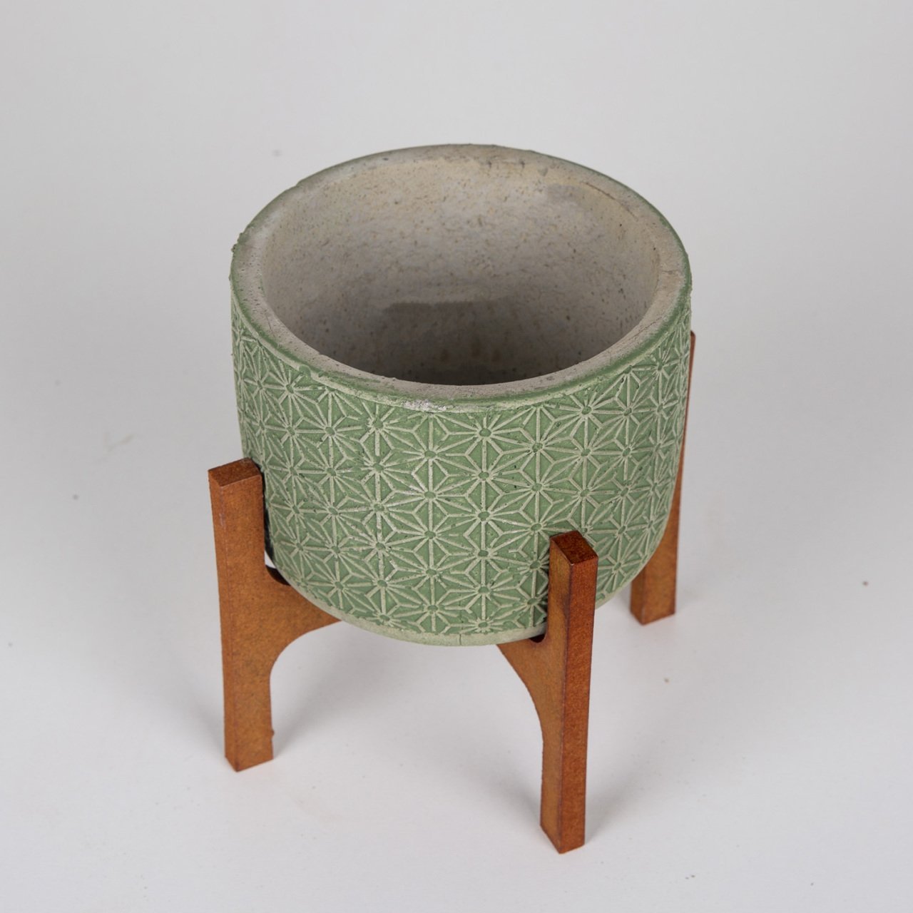 Veramaya Stand Ayaklı Yıldız Desen Yeşil Beton Saksı 12x15,5 Cm