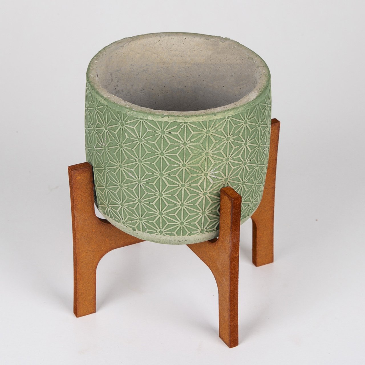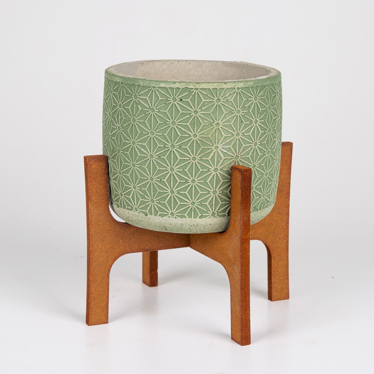 Veramaya Stand Ayaklı Yıldız Desen Yeşil Beton Saksı14x20,5 Cm
