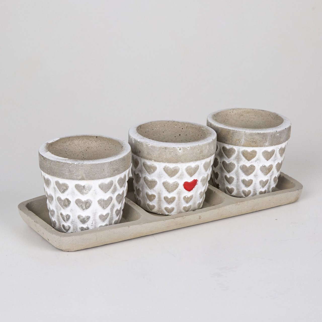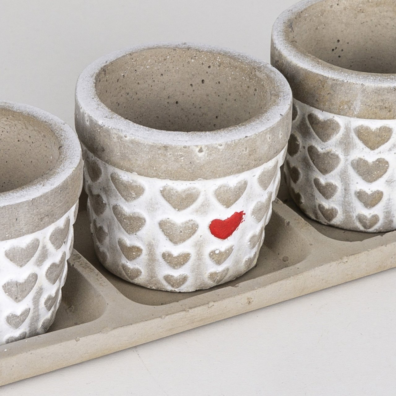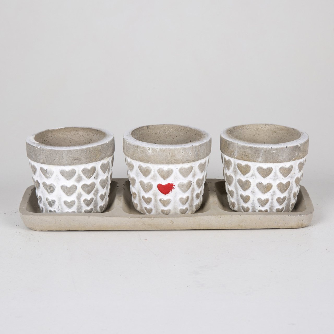 Veramaya Tabaklı Kalpli Beton Saksı Trio Set 24,5x7x9,5 Cm