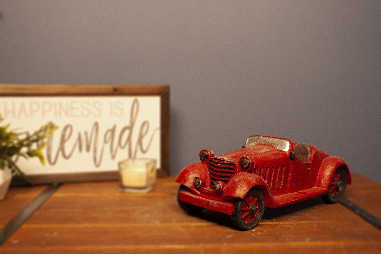 VeraMaya Üstü Açık Klasik Araba Biblo Kırmızı 29x10x13 Cm