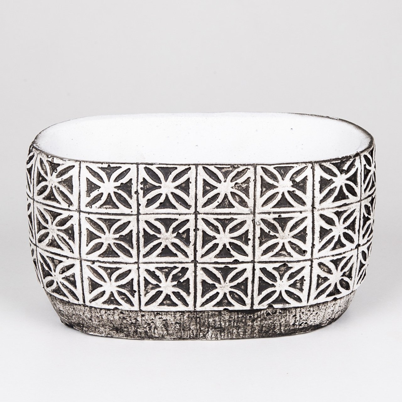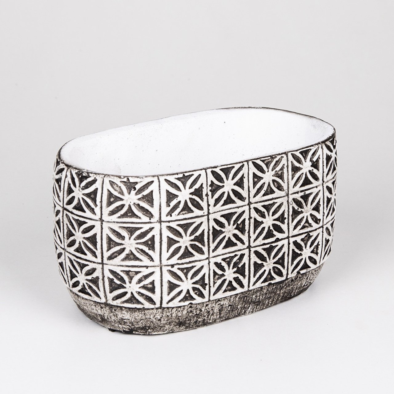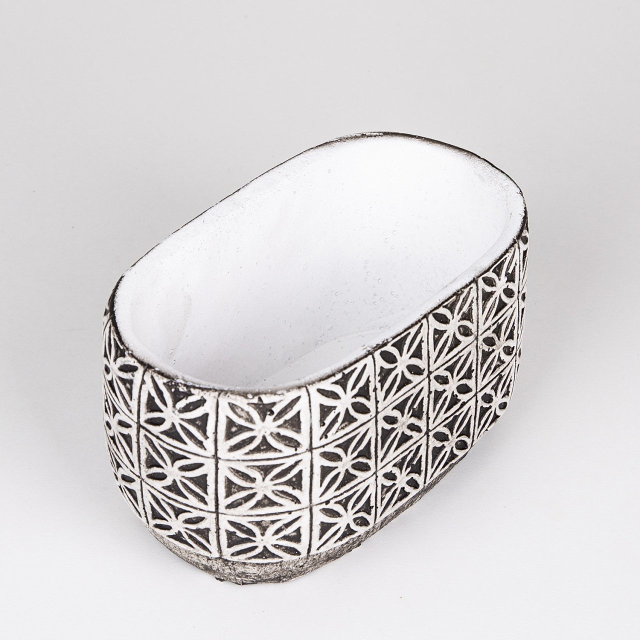 VeraMaya Yaprak Desen Oval Eskitme Beton Saksı 20x11x12 Cm