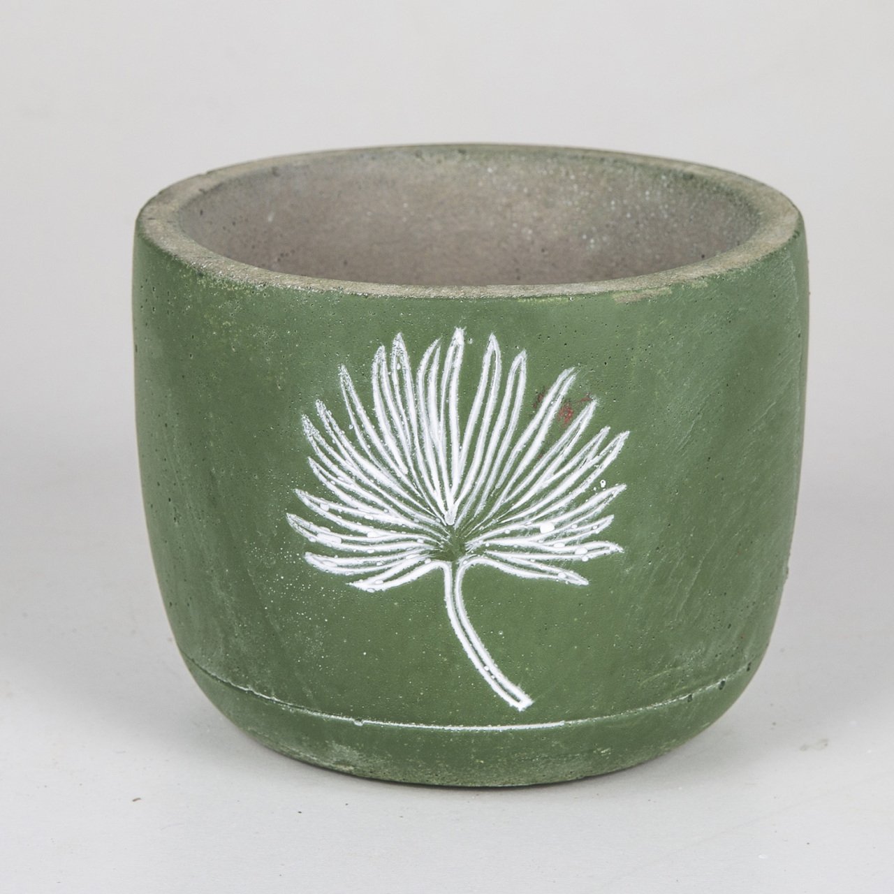 Veramaya Yaprak Figürlü Yeşil Beton Saksı 14x12 Cm