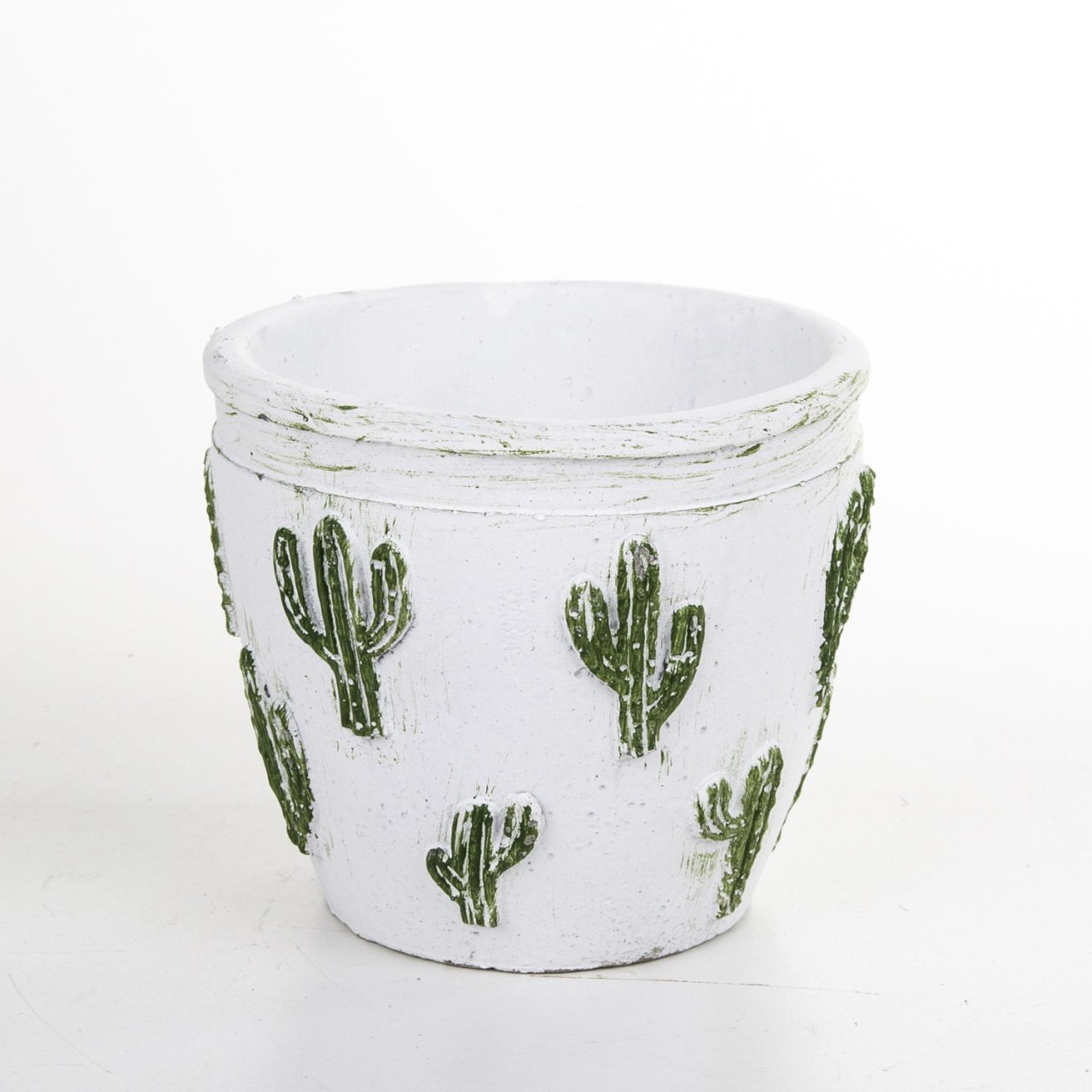Veramaya Yeşil Beyaz Eskitme Kaktüs Beton Saksı 14x12 Cm