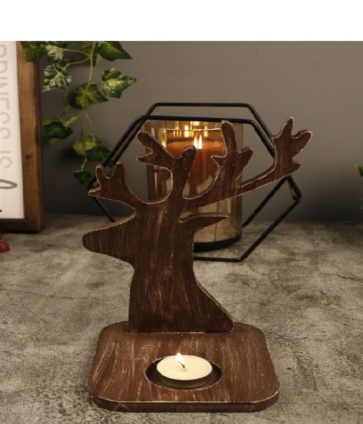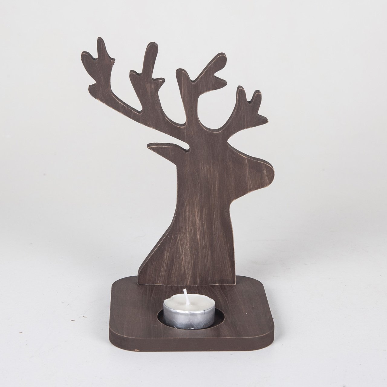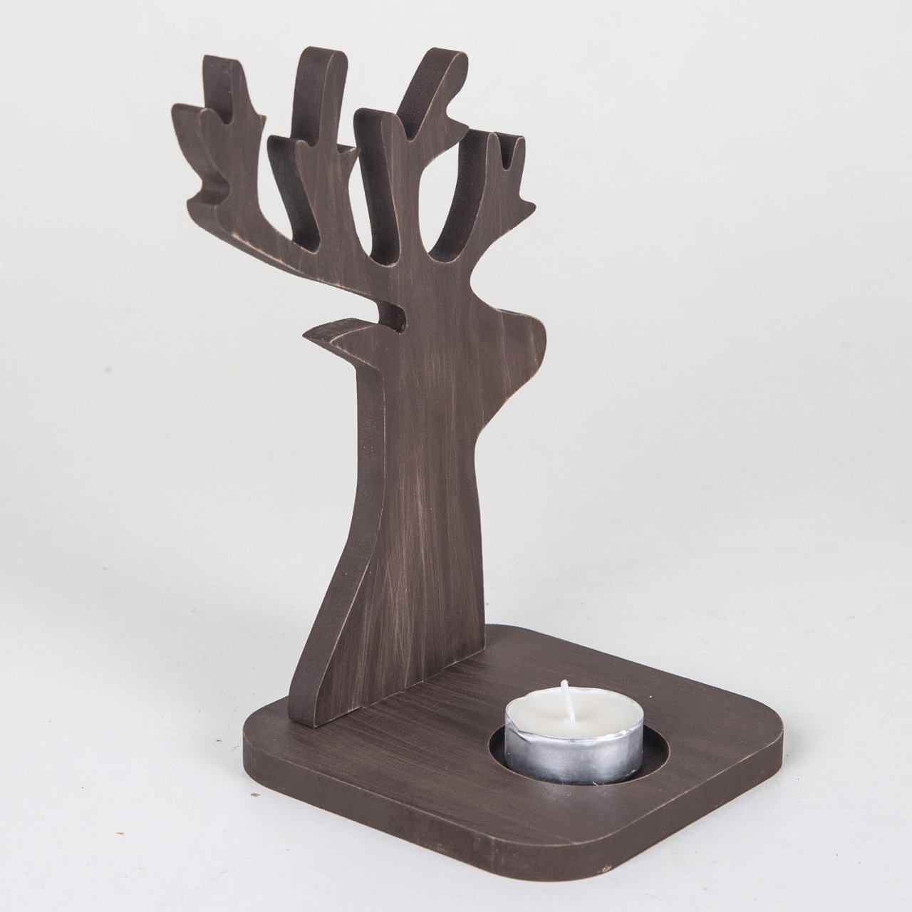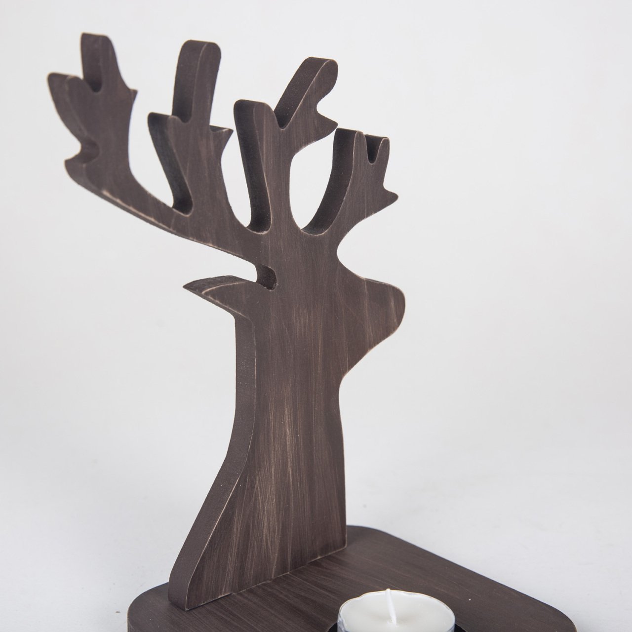 VeraMaya Yılbaşı Geyik Ahşap Mumluk Kahverengi 21x12 Cm