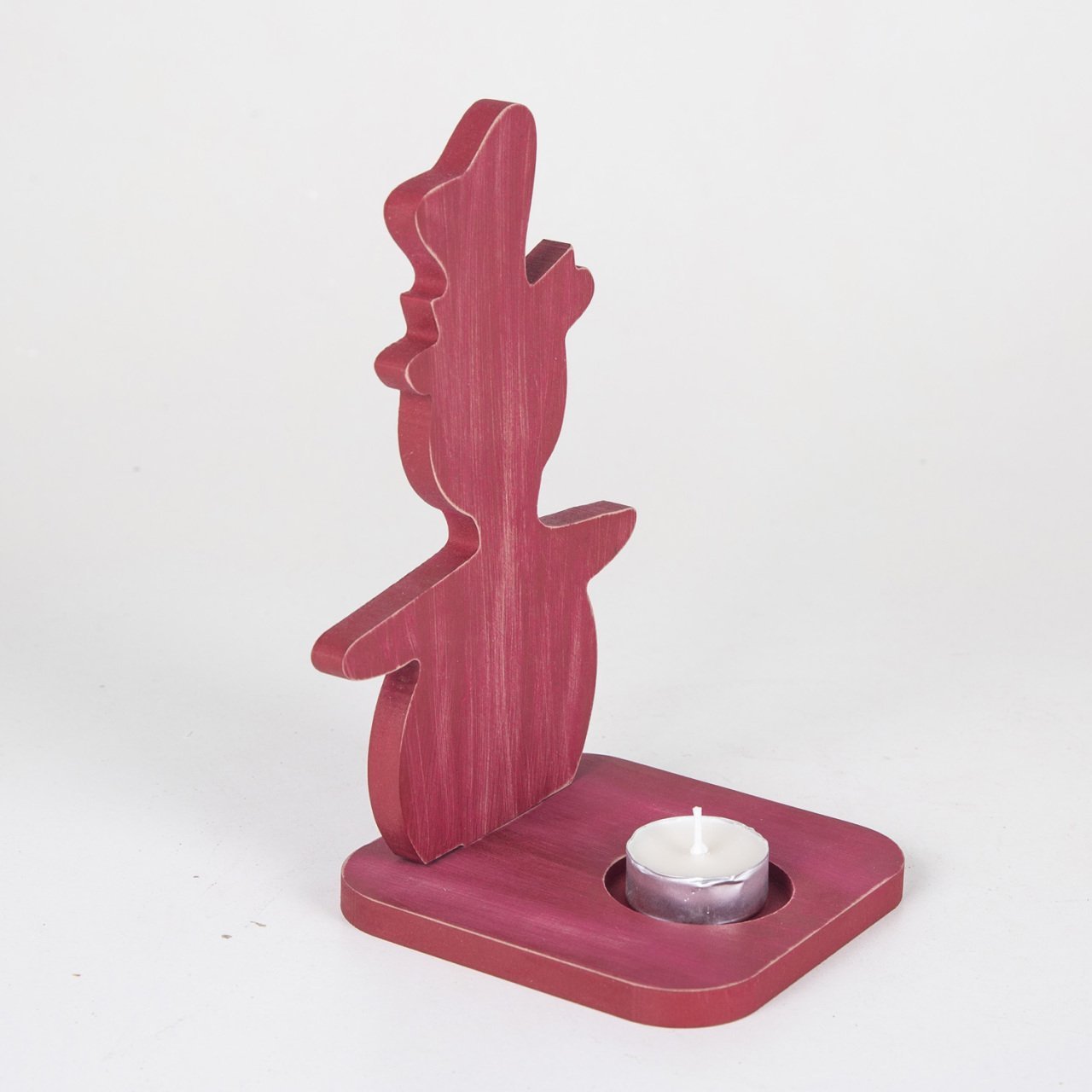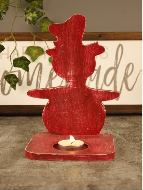 VeraMaya Yılbaşı Kardan Adam Ahşap Mumluk Kırmızı 21x12 Cm