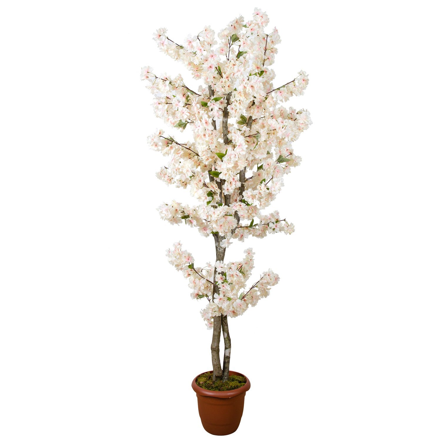 Yapay Bahar Dalı Ağacı, Beyaz-Pembe - Çift Gövdeli, İri Çiçekli, 200 cm