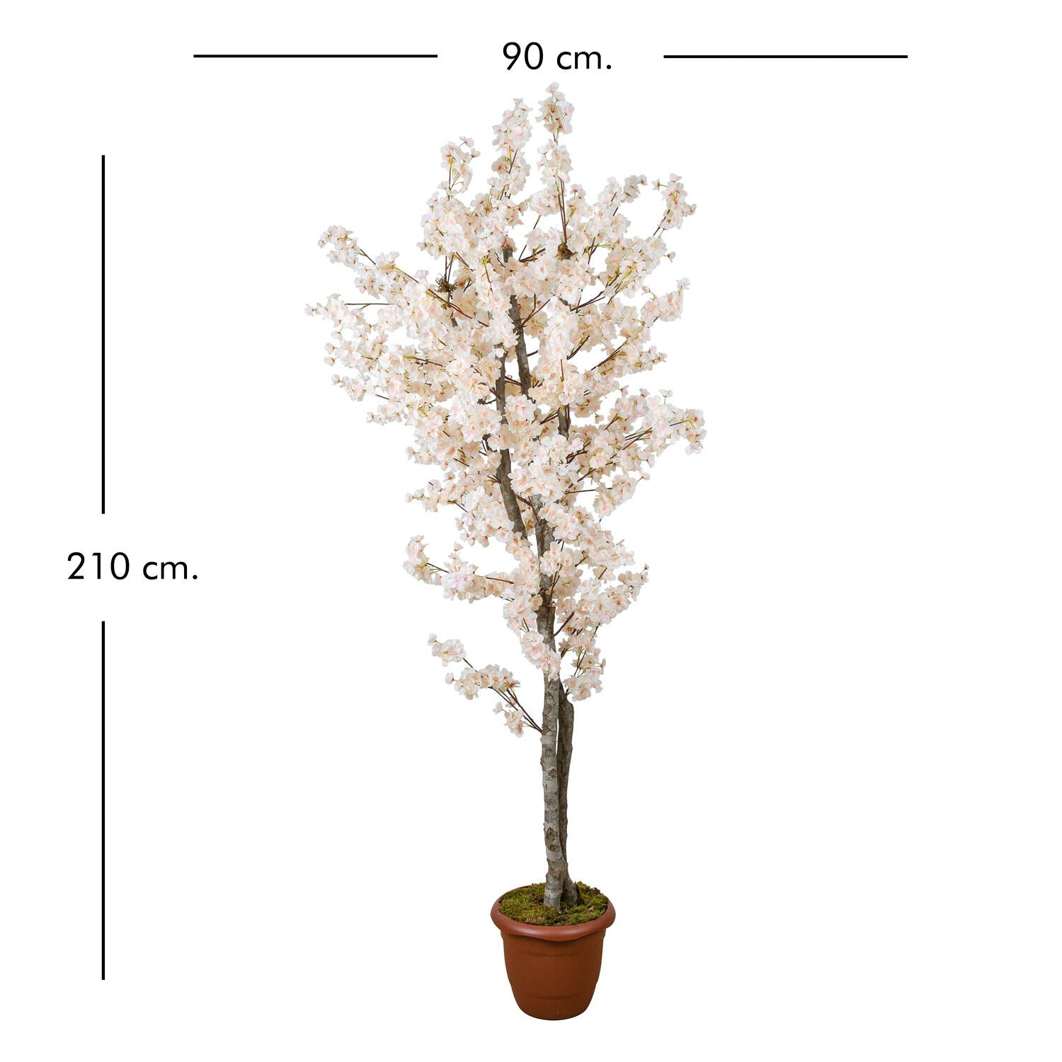 Yapay Bahar Dalı Ağacı, Beyaz-Pembe - Çift Gövdeli, Küçük Çiçekli, 210 cm