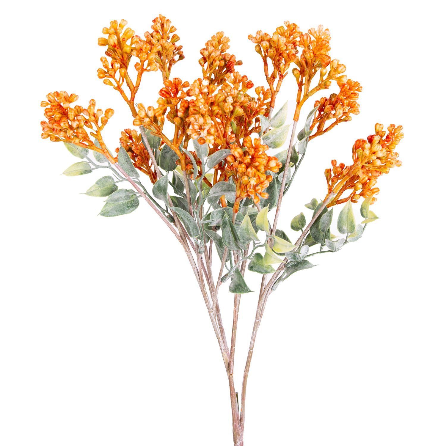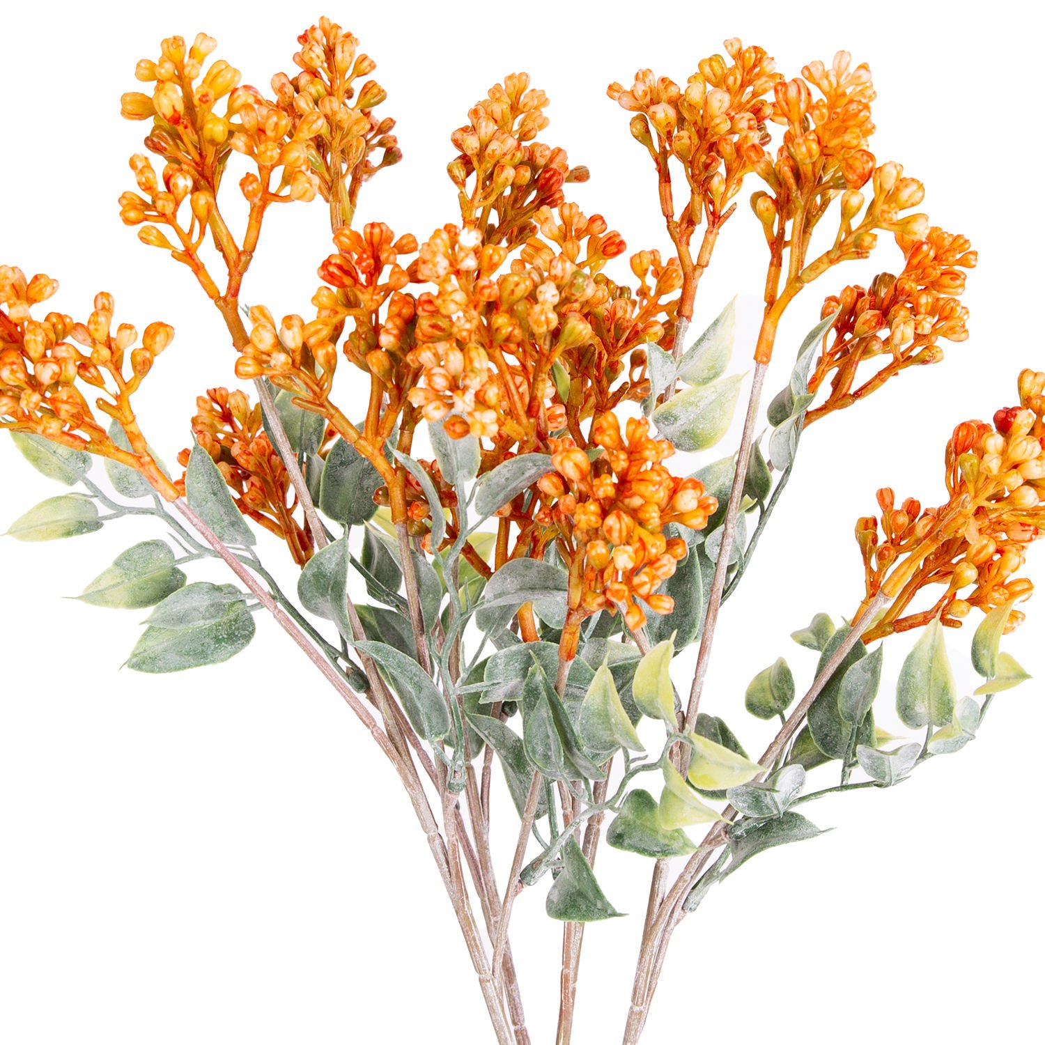 Yoğun yeşil yapraklı tek gövde üzerinde dört dal ve dallar üzerinde yoğun çiçekler bulunan Turuncu renkli Berry Demet . Mağaza , cafe , ev ve balkonlarınızda kullanabileceğiniz bakım gerektirmeyen , diğer yapay bitki ve çiçek ürünlerimizle aranjman oluşturabileceğiniz , her zaman yeşil kalmasıyla dikkat çeken dekorasyonlarda her türlü mekan süslemeleri için kullanılabilecek detaylı doğal görünümlü Berry Demet .