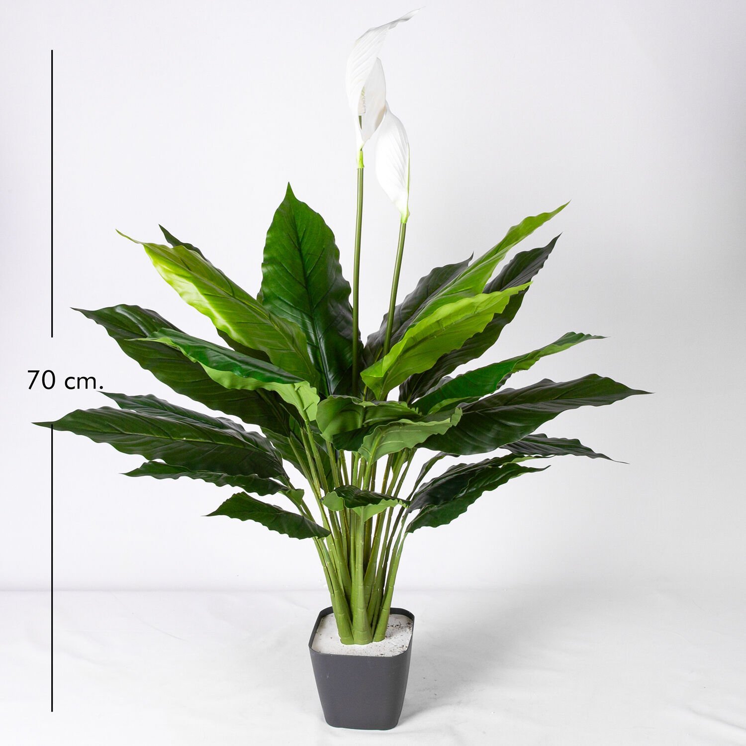 Mağaza , cafe , ev ve balkonlarınızda kullanabileceğiniz bakım gerektirmeyen , diğer yapay bitki ve çiçek ürünlerimizle aranjman oluşturabileceğiniz , her zaman yeşil kalmasıyla dikkat çeken dekorasyonlarda iç mekan süslemeleri için kullanılabilecek doğal görünümlü dekoratif yapay bitki Gerçek Dokulu Spathiphyllum-Yelken Çiçeği .