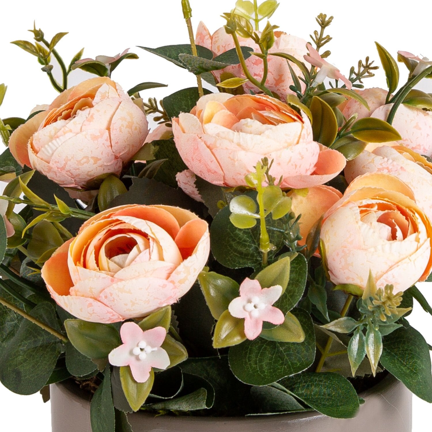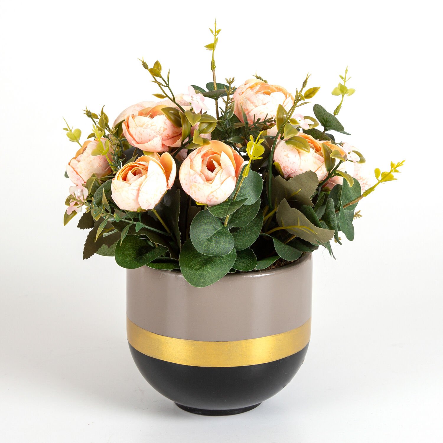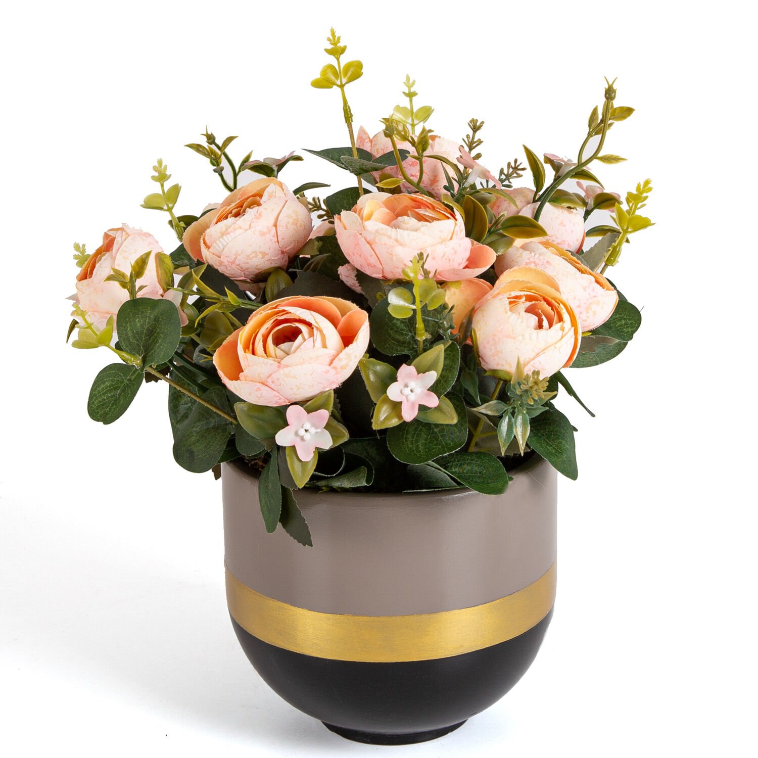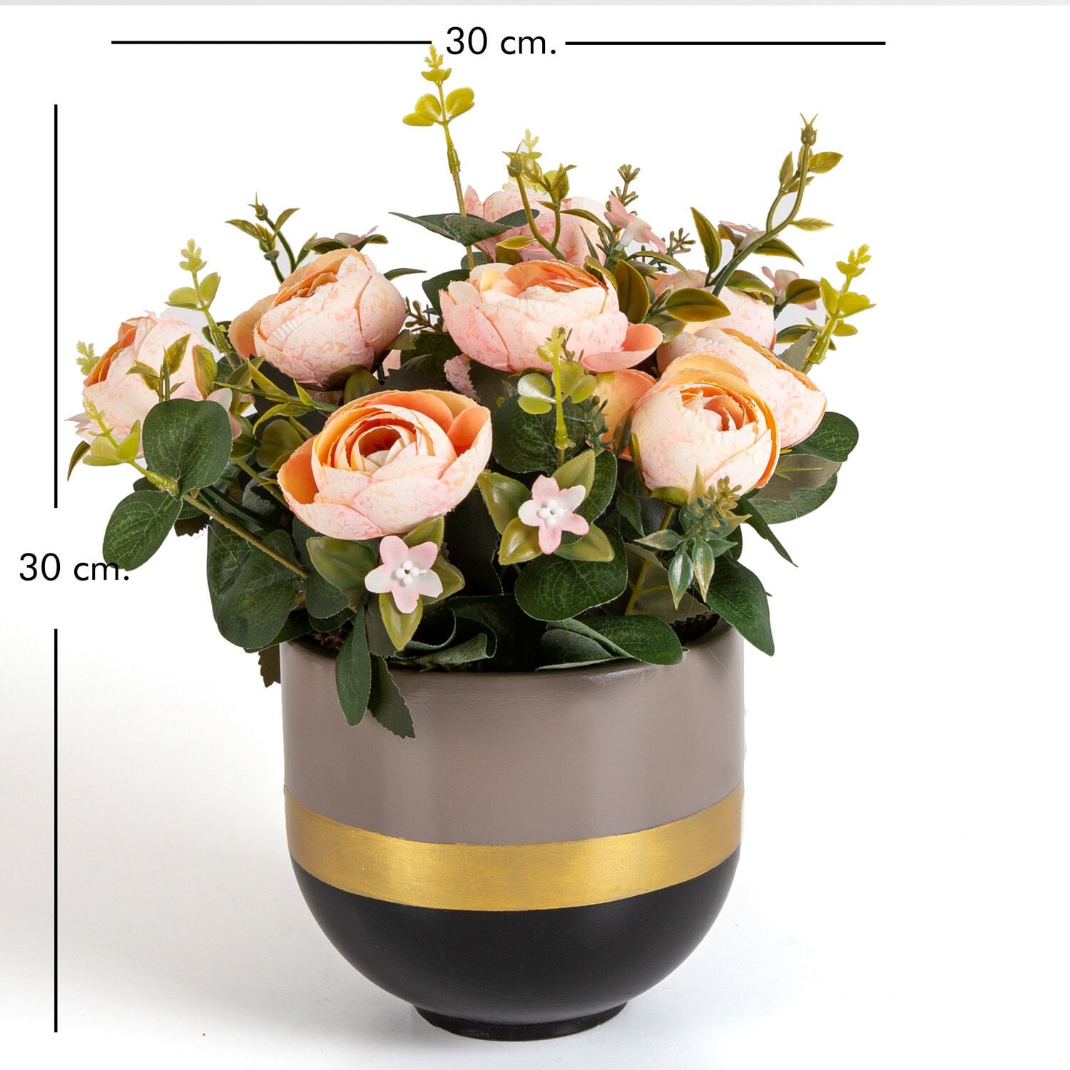 Beton Saksıda Yapay Çiçek Aranjmanı Somon Şakayık Vizon-Siyah 30 x 30 Cm.