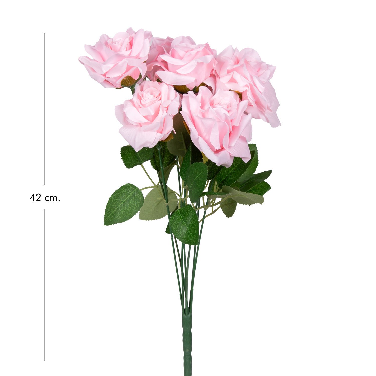 Yapay Çiçek, Gül Buketi, Açık Pembe - 7 Çiçekli, 42 cm
