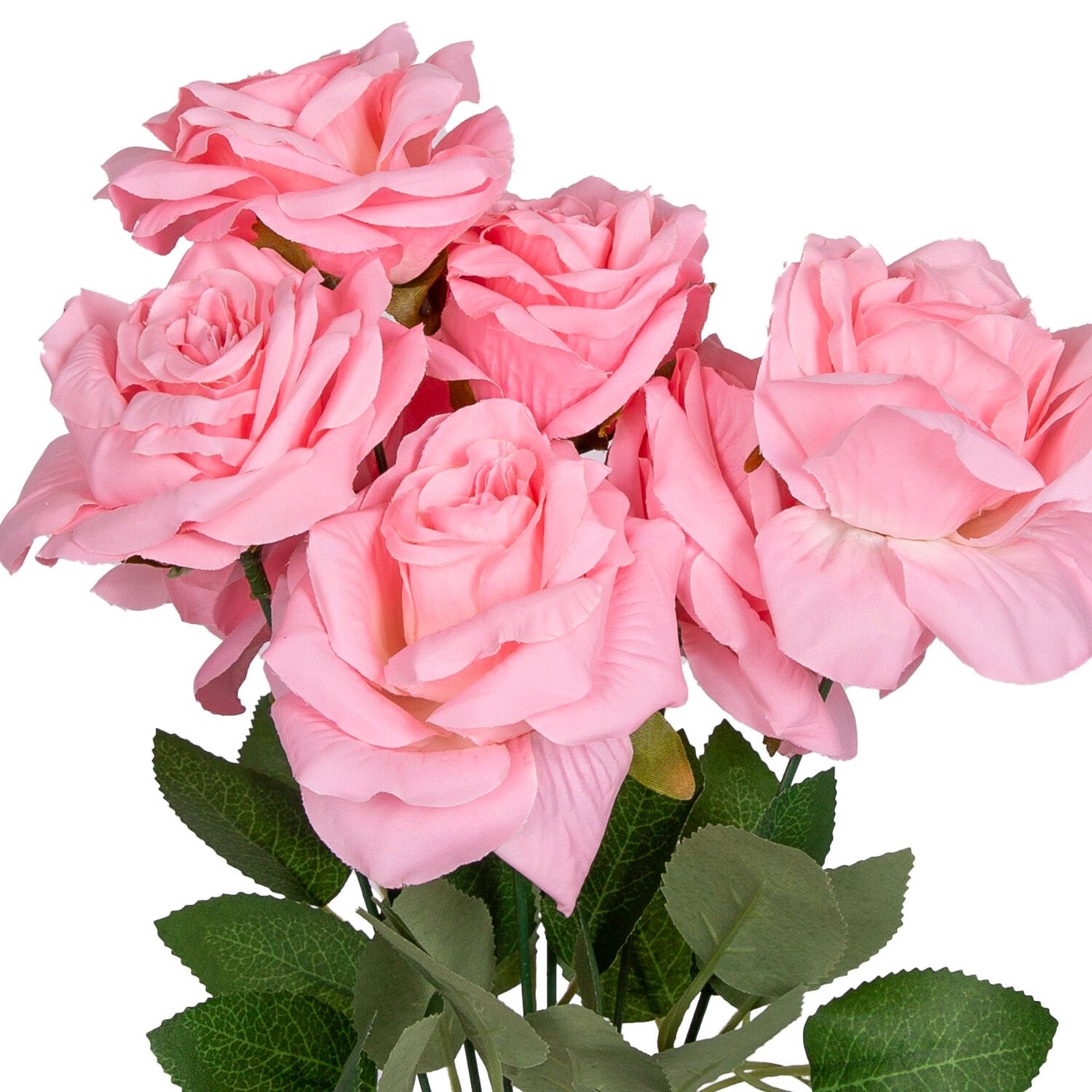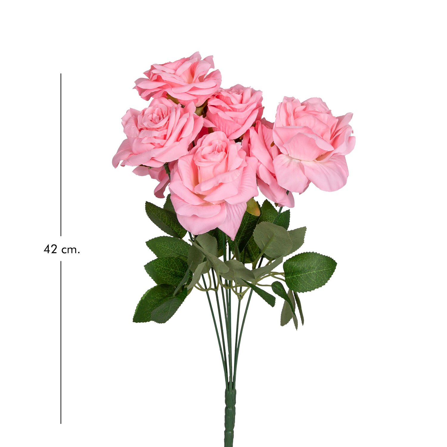 Yapay Çiçek, Gül Buketi, Pembe - 7 Çiçekli, 42 cm