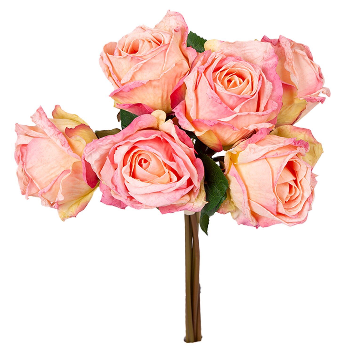 Yapay Çiçek, Gül Demeti, Fuşya-Sarı - 6'lı Demet, 37 cm