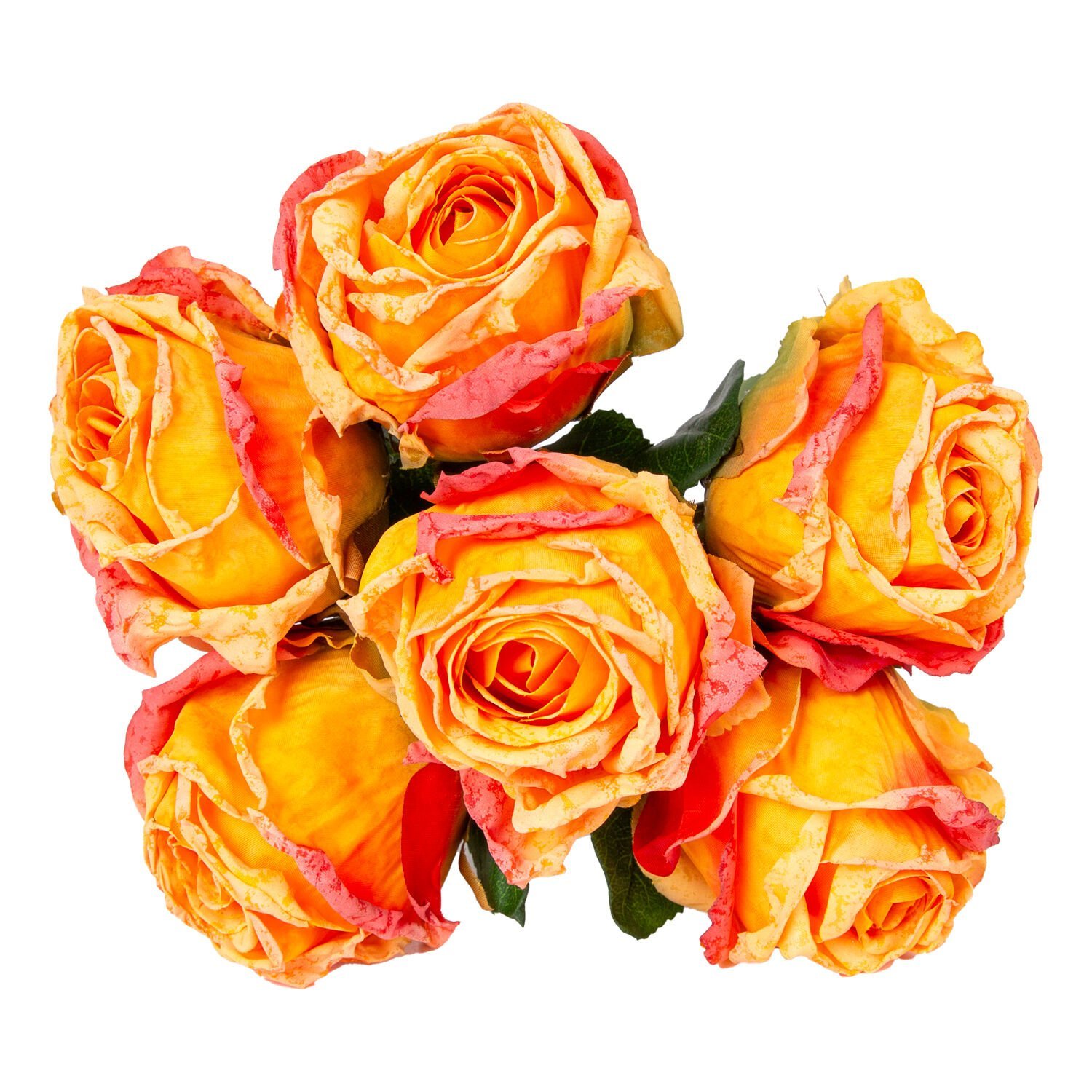 Yapay Çiçek, Gül Demeti, Sarı-Kırmızı - 6'lı Demet, 37 cm
