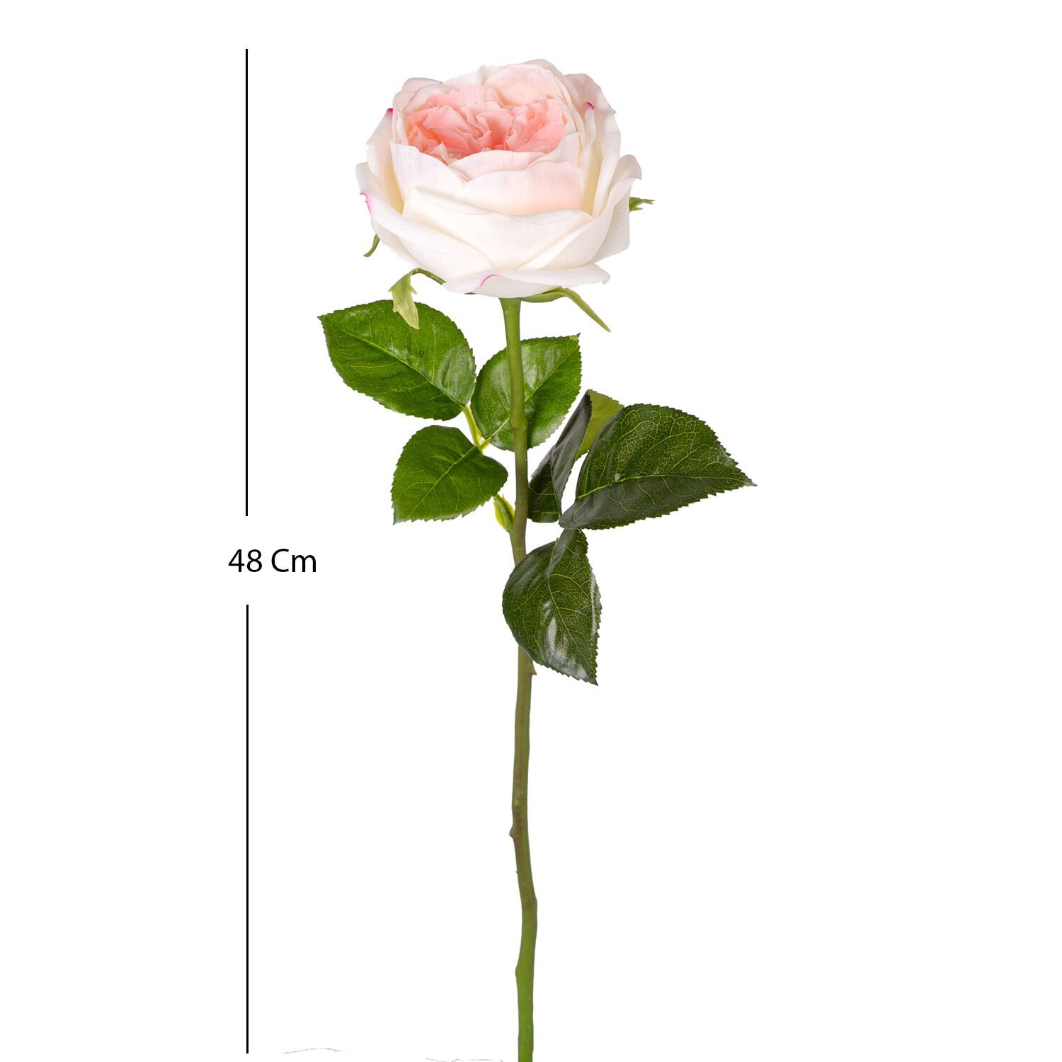 Yapay Çiçek, Gül, Islak Dokulu, Beyaz-Pembe - 48 cm