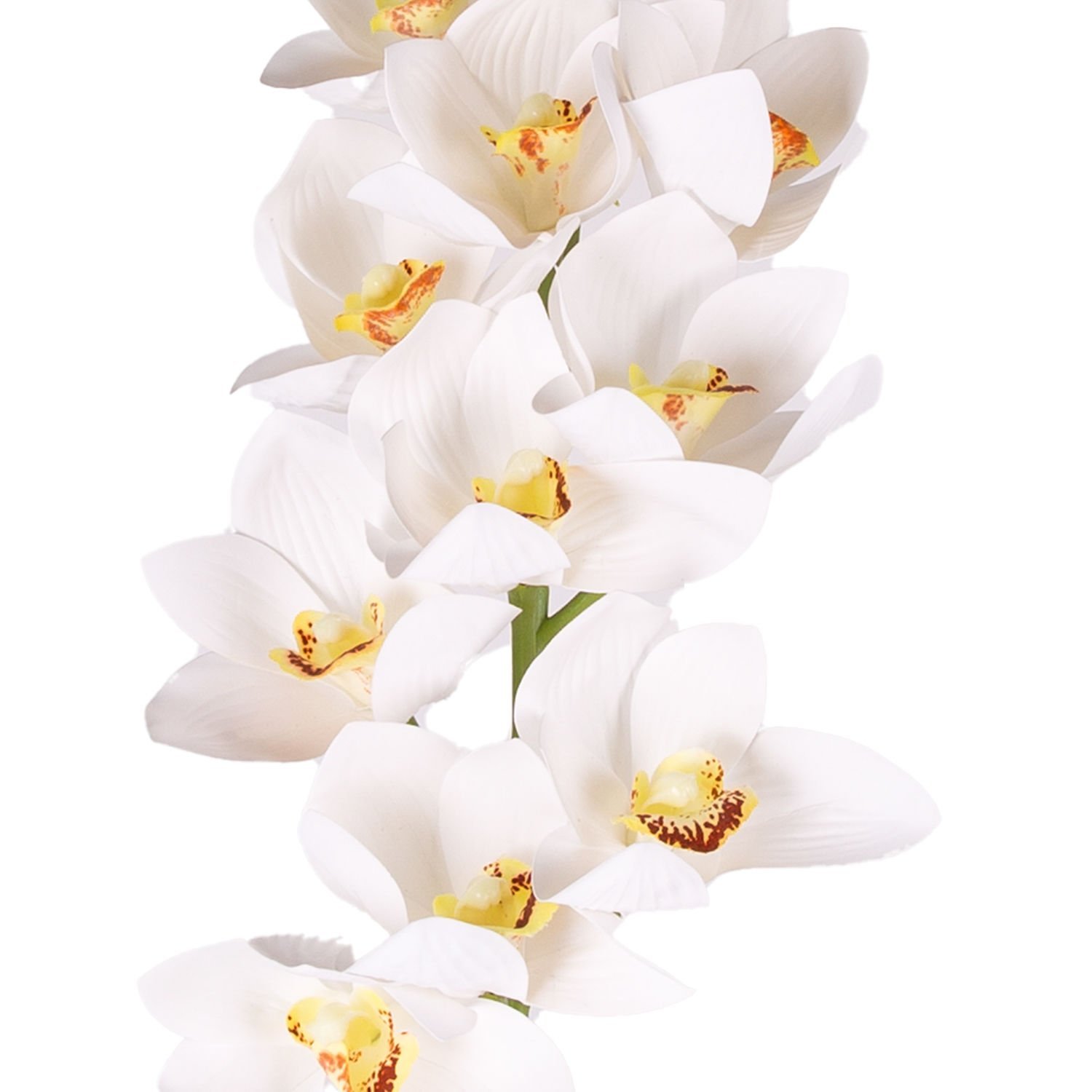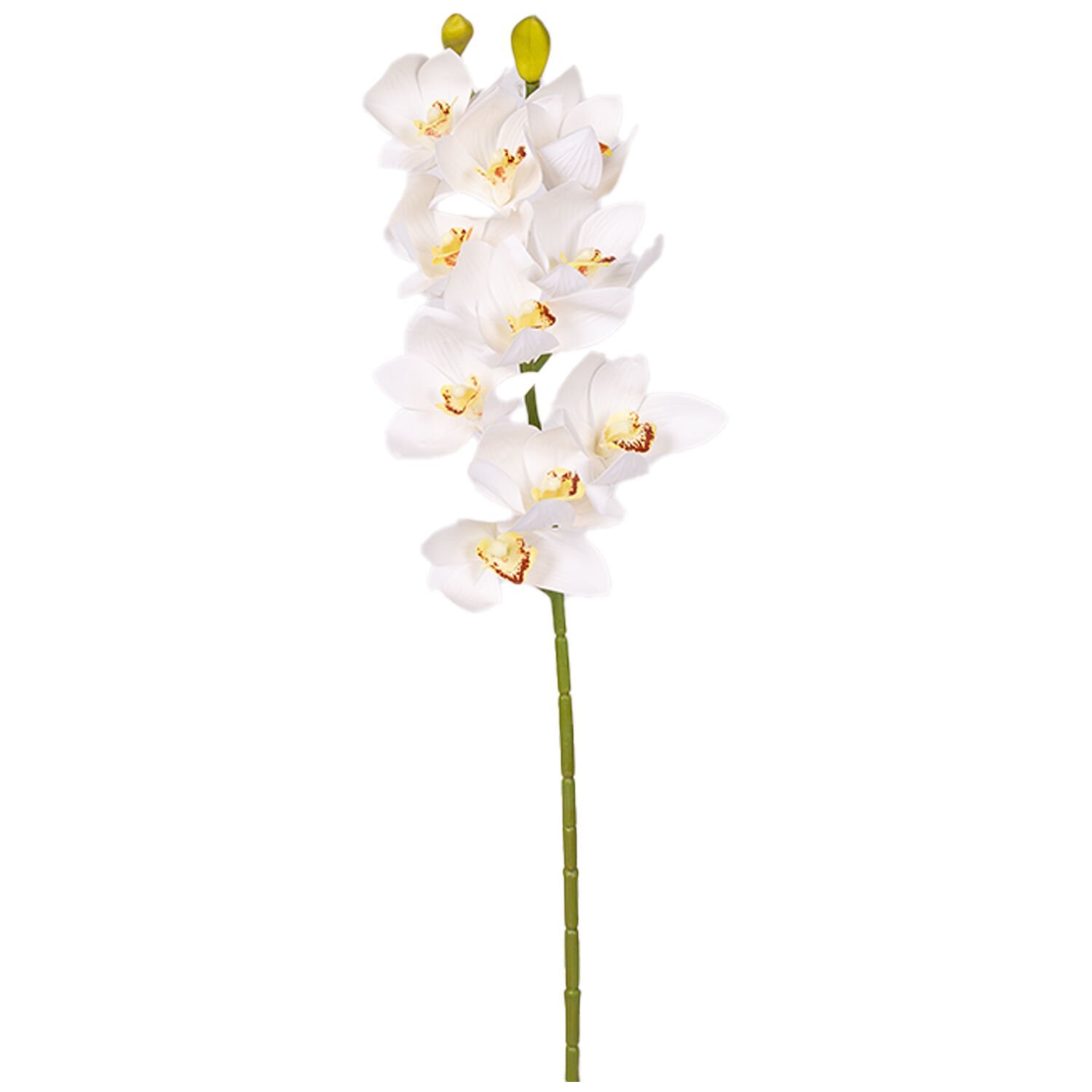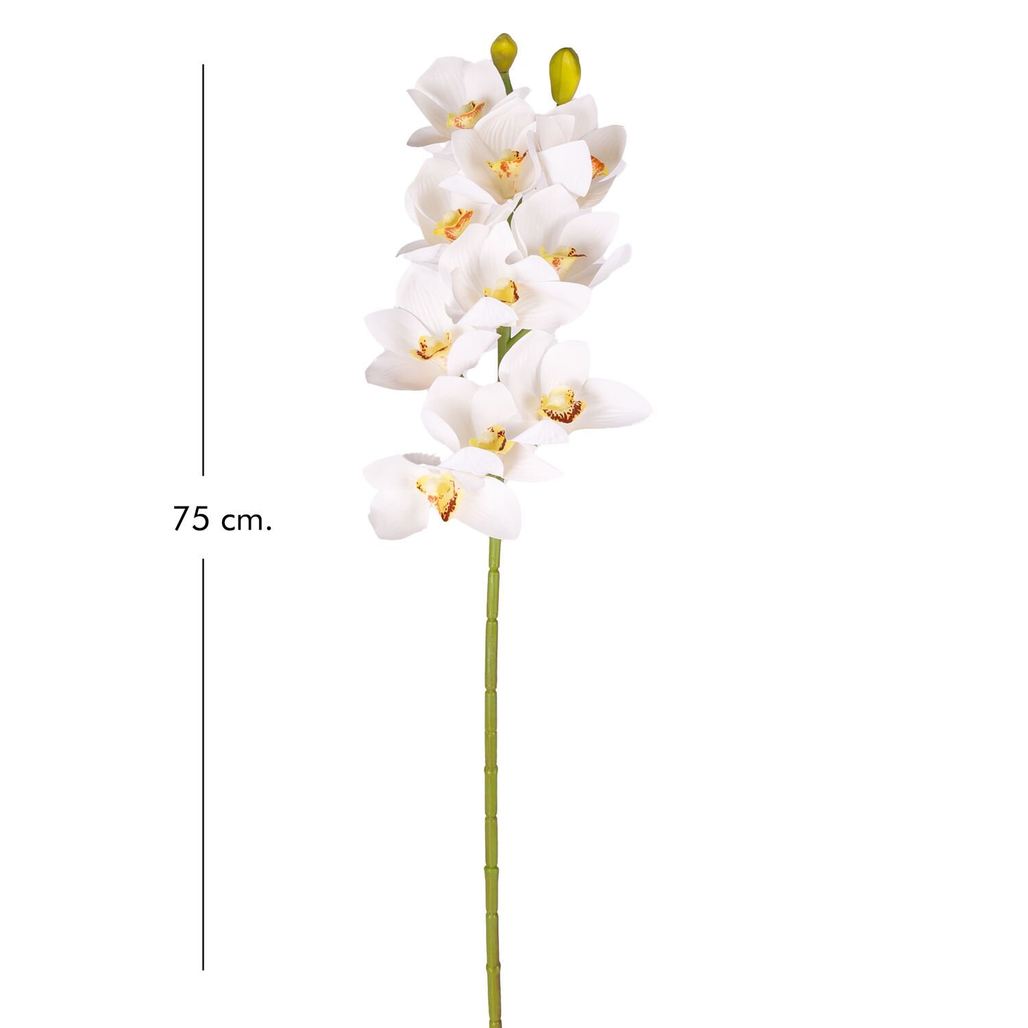 Yapay Çiçek, Orkide, Gerçek Dokunuş, Beyaz-Sarı - 75 cm