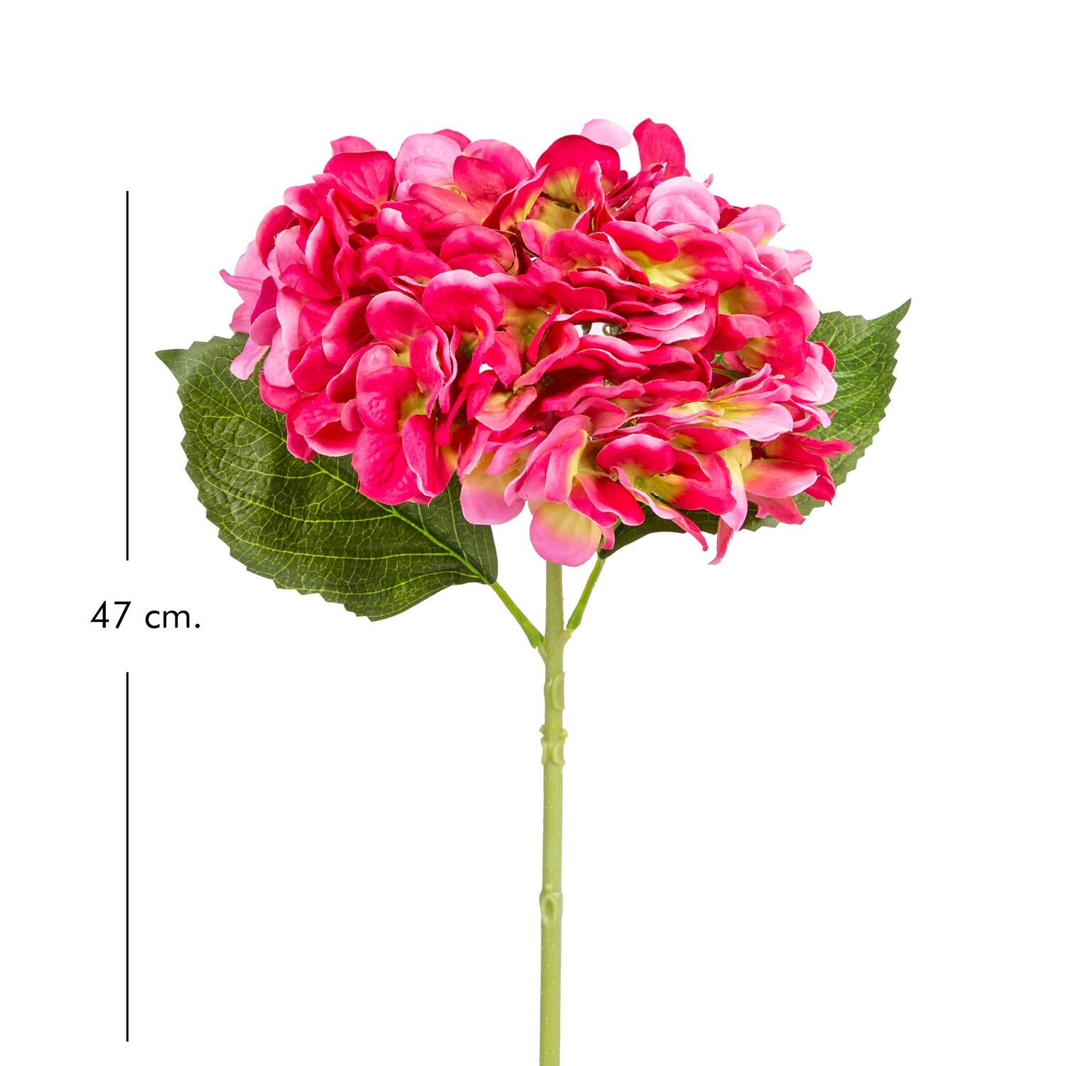 Yapay Çiçek, Ortanca, Fuşya/Yeşil - 47 cm
