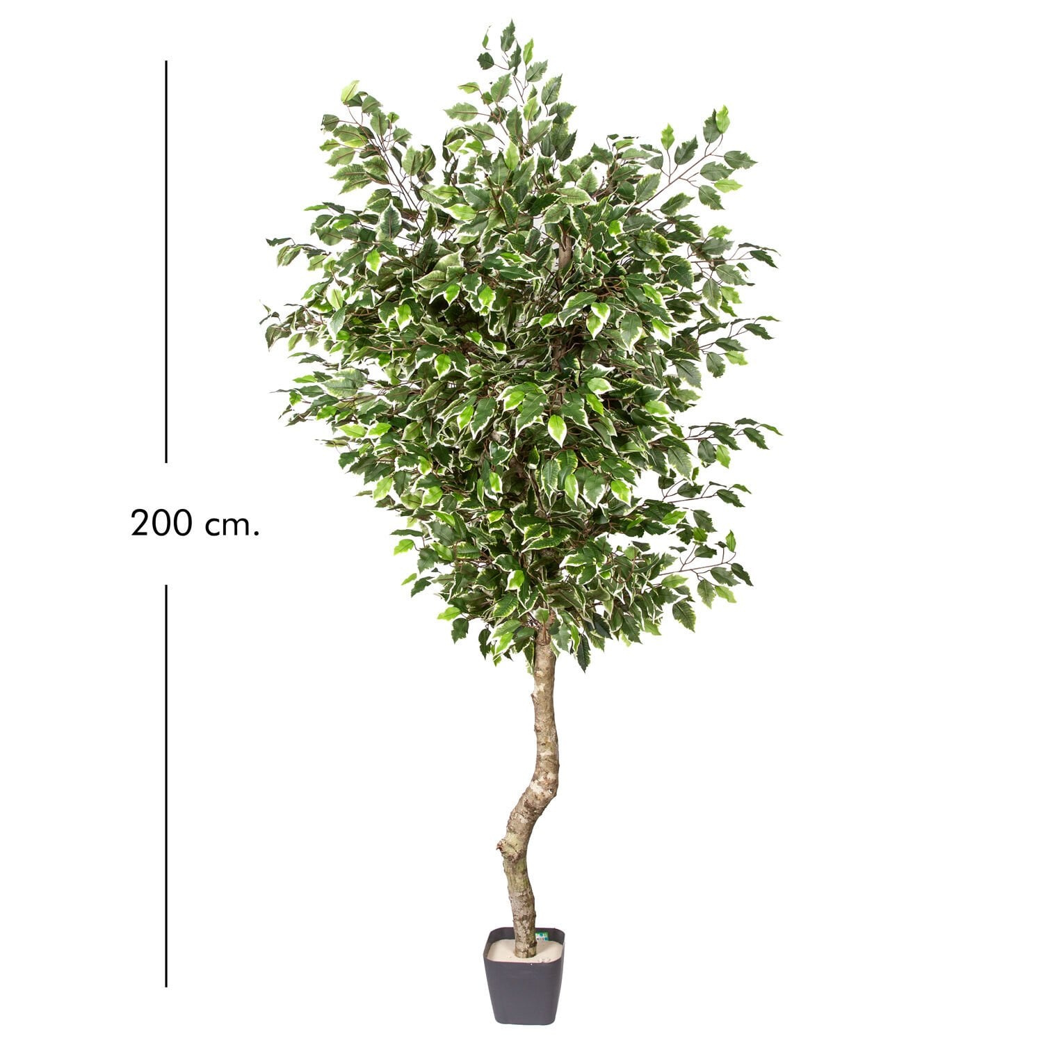 Yapay Ficus Ağacı, Tek Gövde, Yeşil-Beyaz - 200 cm