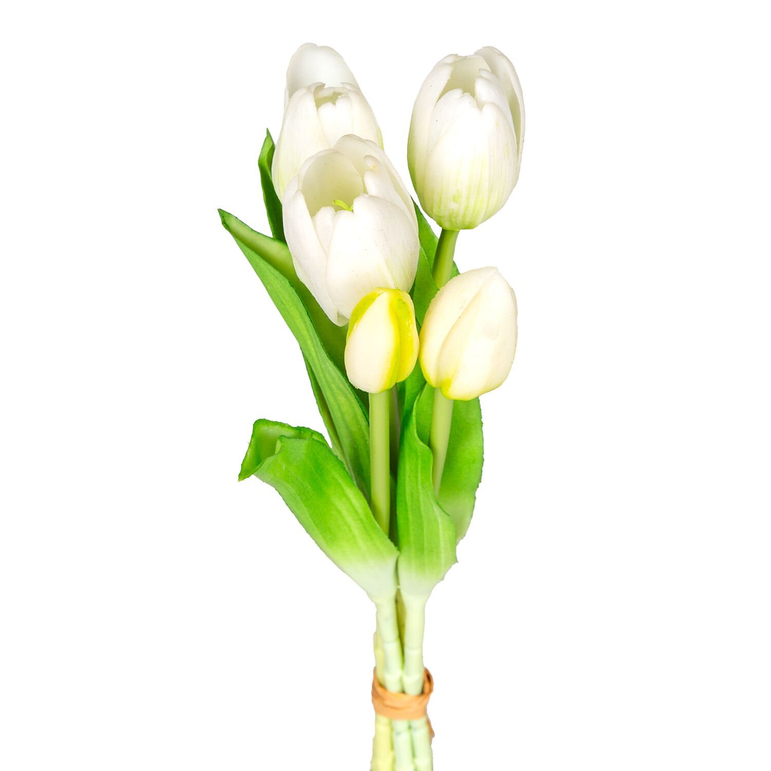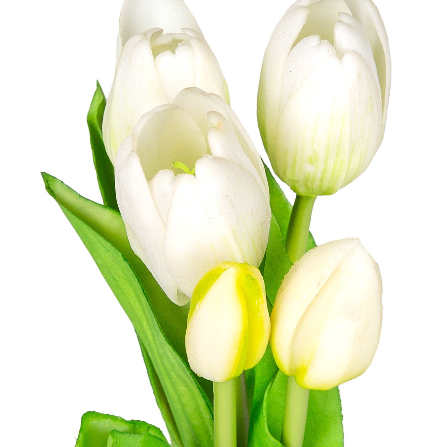 Yapay Lale, Beyaz - 3 Çiçek, 2 Tomurcuklu, 33 cm