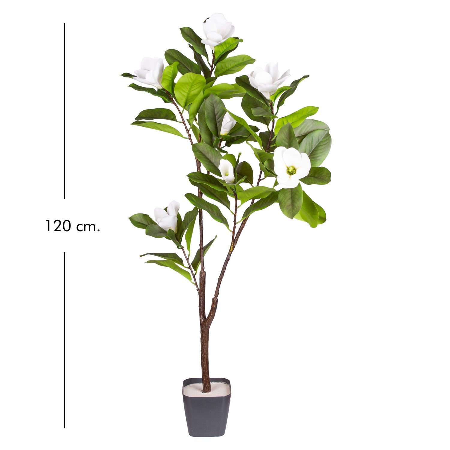 Yapay Manolya Ağacı Gerçek Dokulu Yeşil-Beyaz 120 Cm.