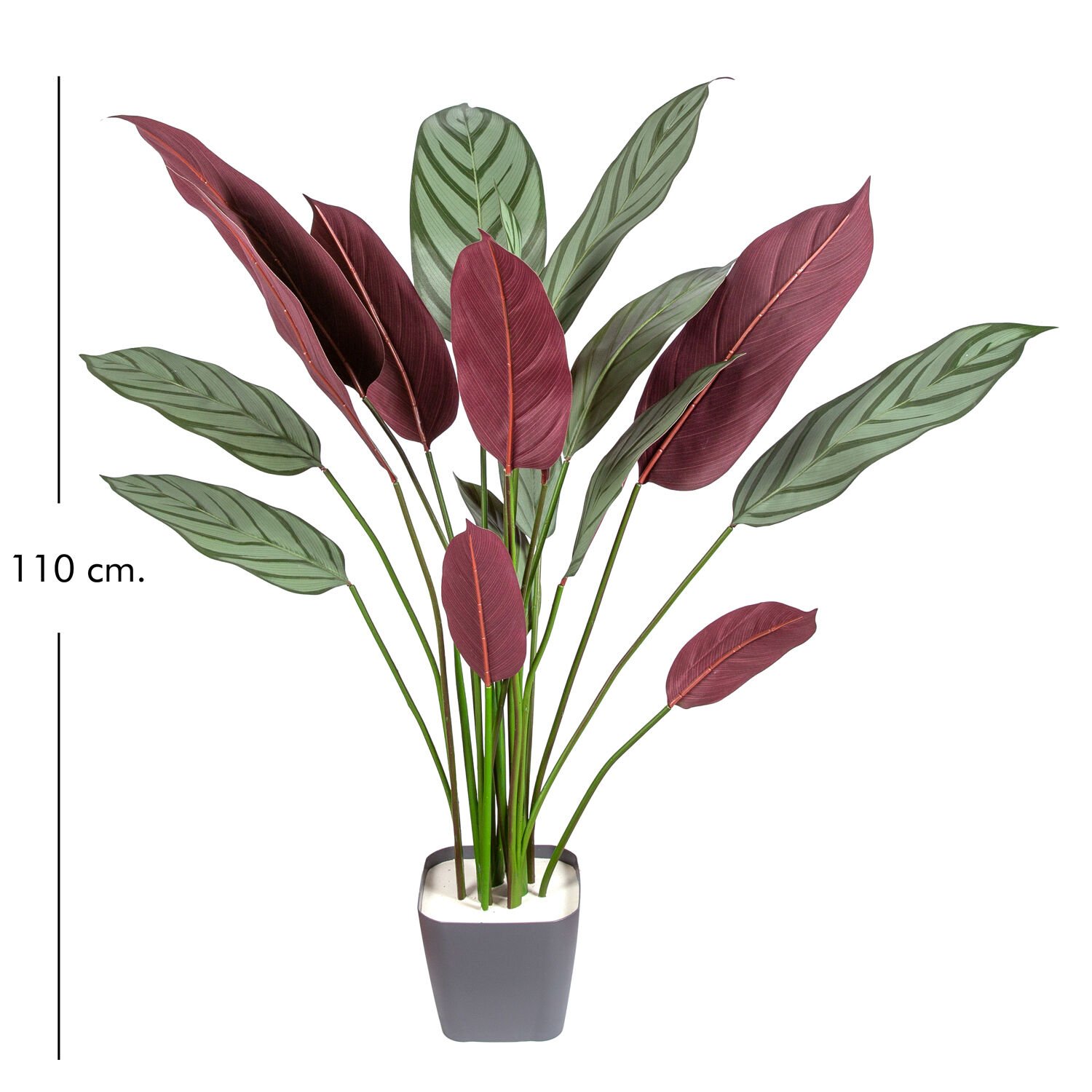 Yapay Maranta Ağacı Gerçek Dokulu 18 Yaprak Yeşil - Bordo 110 Cm.
